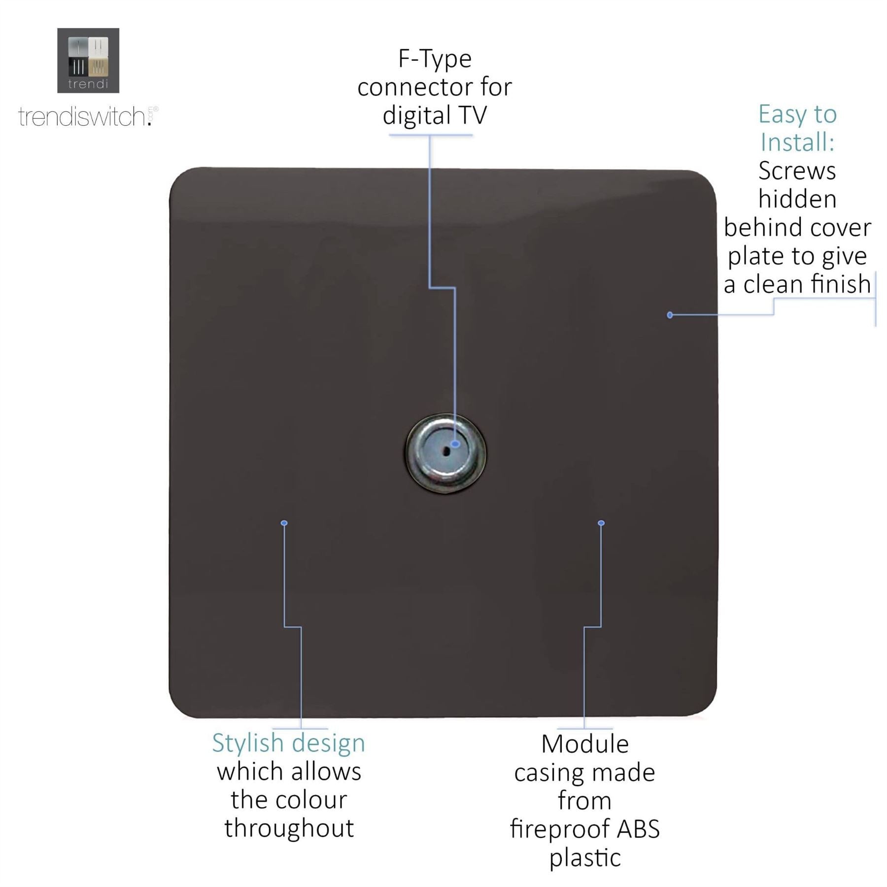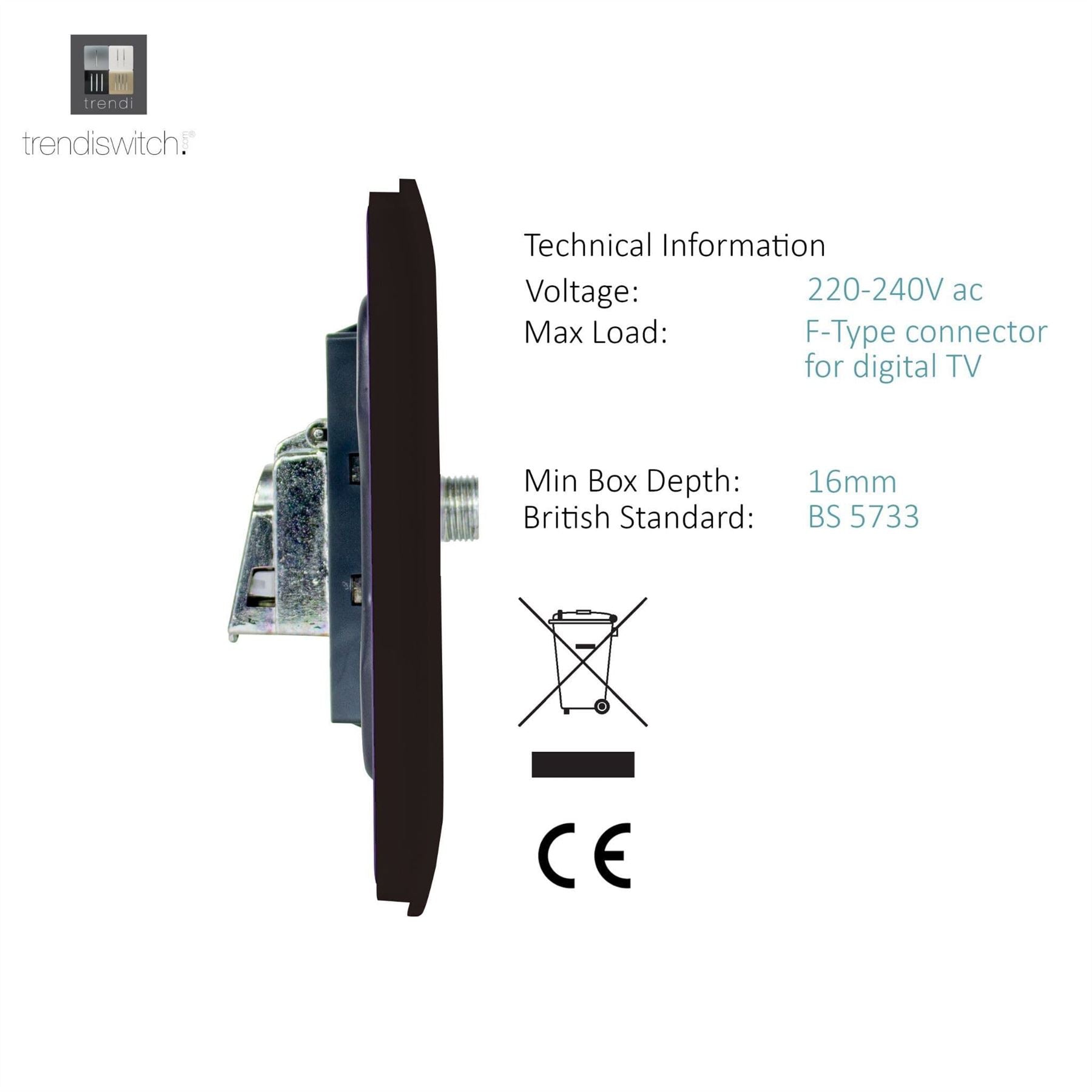 This tactile Modern Gloss designer satellite outlet is part of the Trendi range. This product is a new release and has been highly anticipated, offering the great functionally of a satellite point along with the defined by design Trendi plate style.