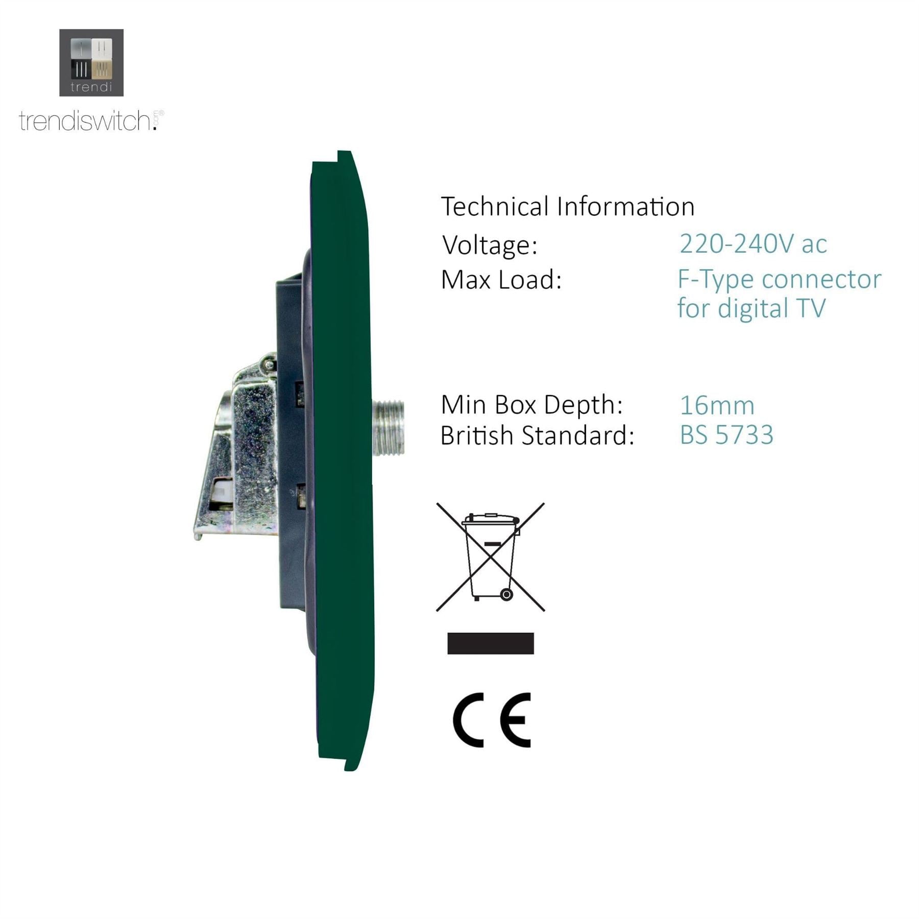 Trendi 1 Gang Artistic Modern Glossy Screwless Television Satellite Socket Dark Green