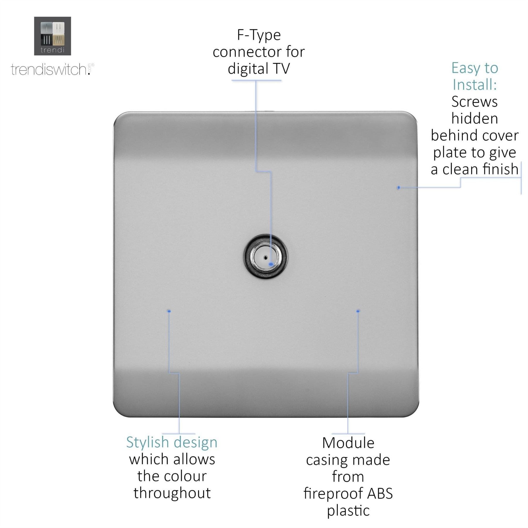 Trendi 1 Gang Artistic Modern Glossy Screwless Television Satellite Socket in Stainless Steel