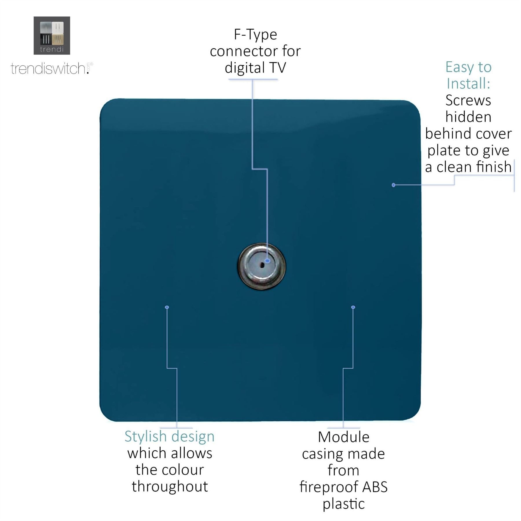 Trendi 1 Gang Artistic Modern Glossy Screwless Television Satellite Socket Midnight Blue