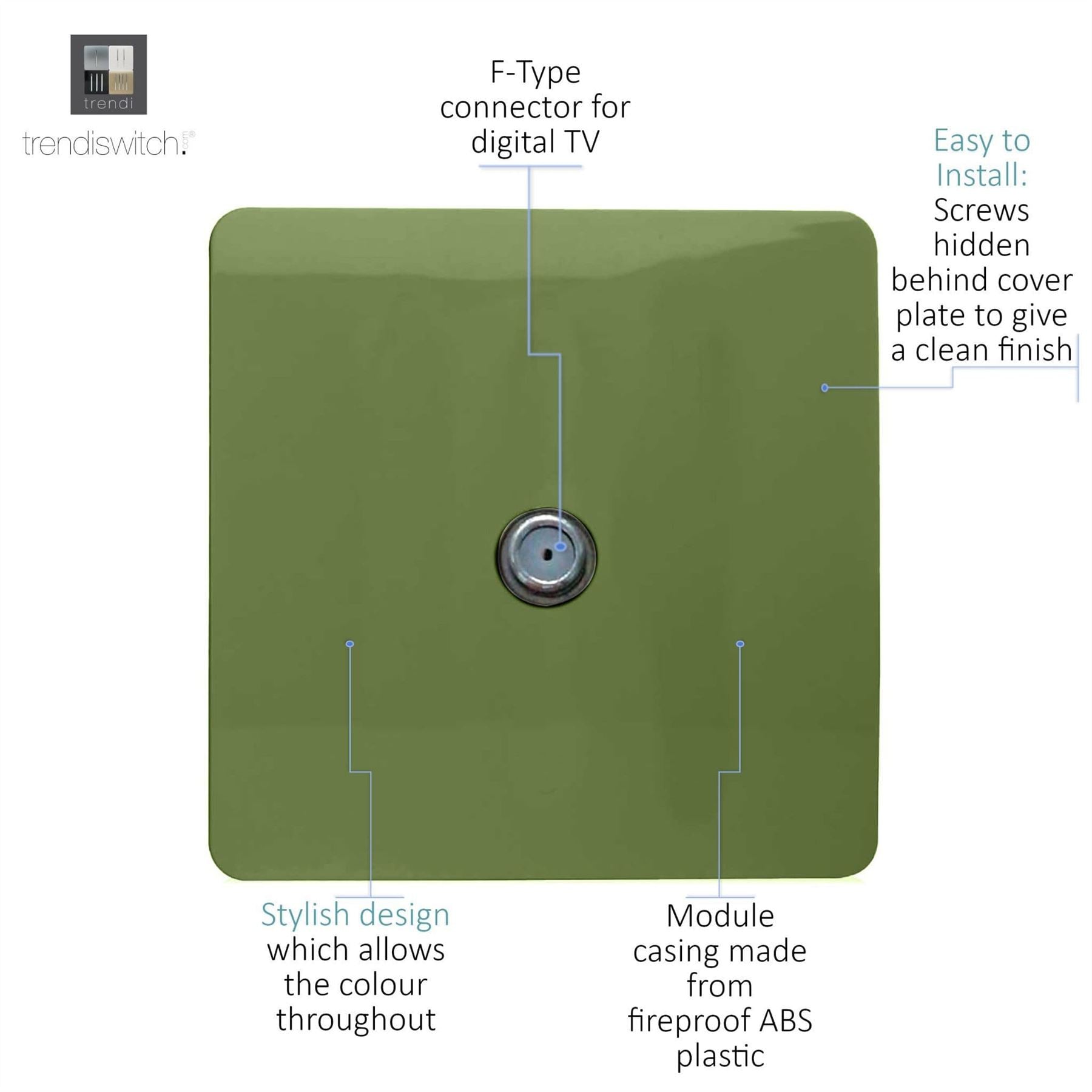 Trendi 1 Gang Artistic Modern Glossy Screwless Television Satellite Socket Moss Green