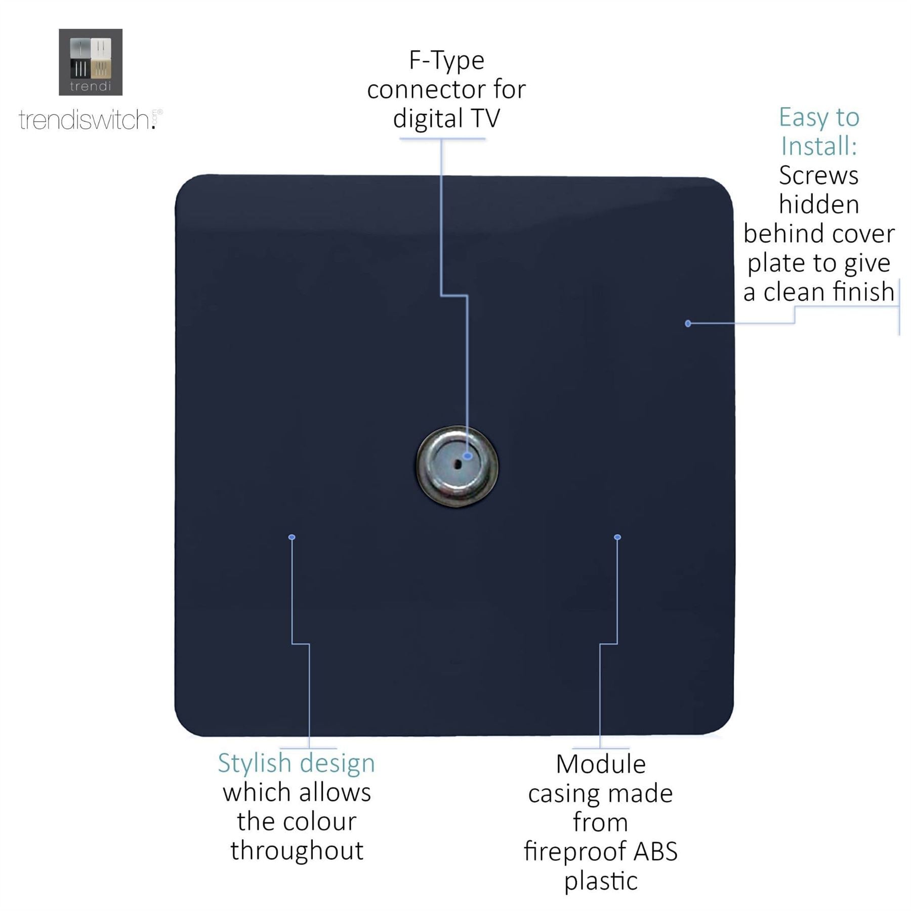 Trendi 1 Gang Artistic Modern Glossy Screwless Television Satellite Socket Navy