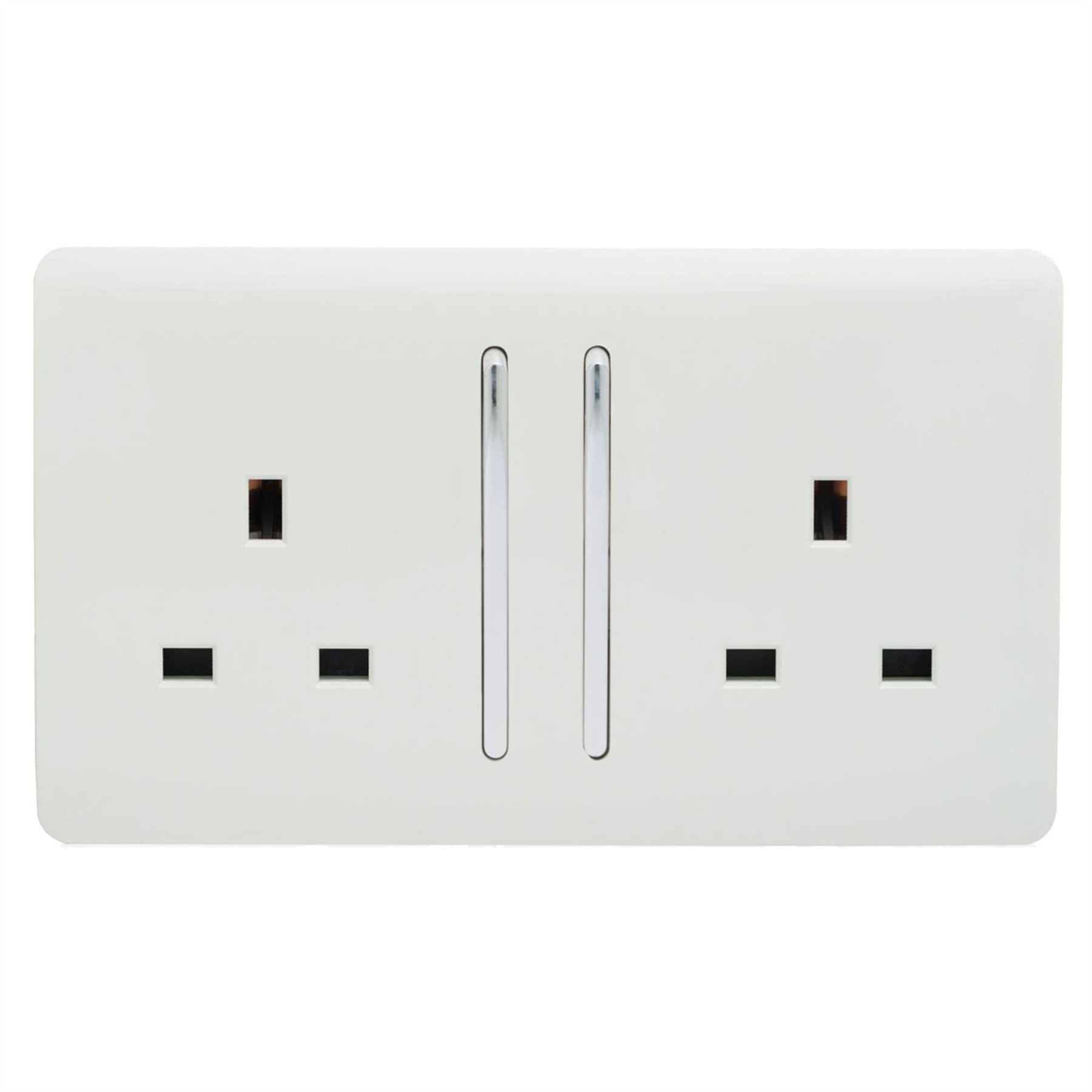 Trendi 2 Gang Artistic Modern 13 Amp Switched Plug Socket White ART-SKT213LWH
