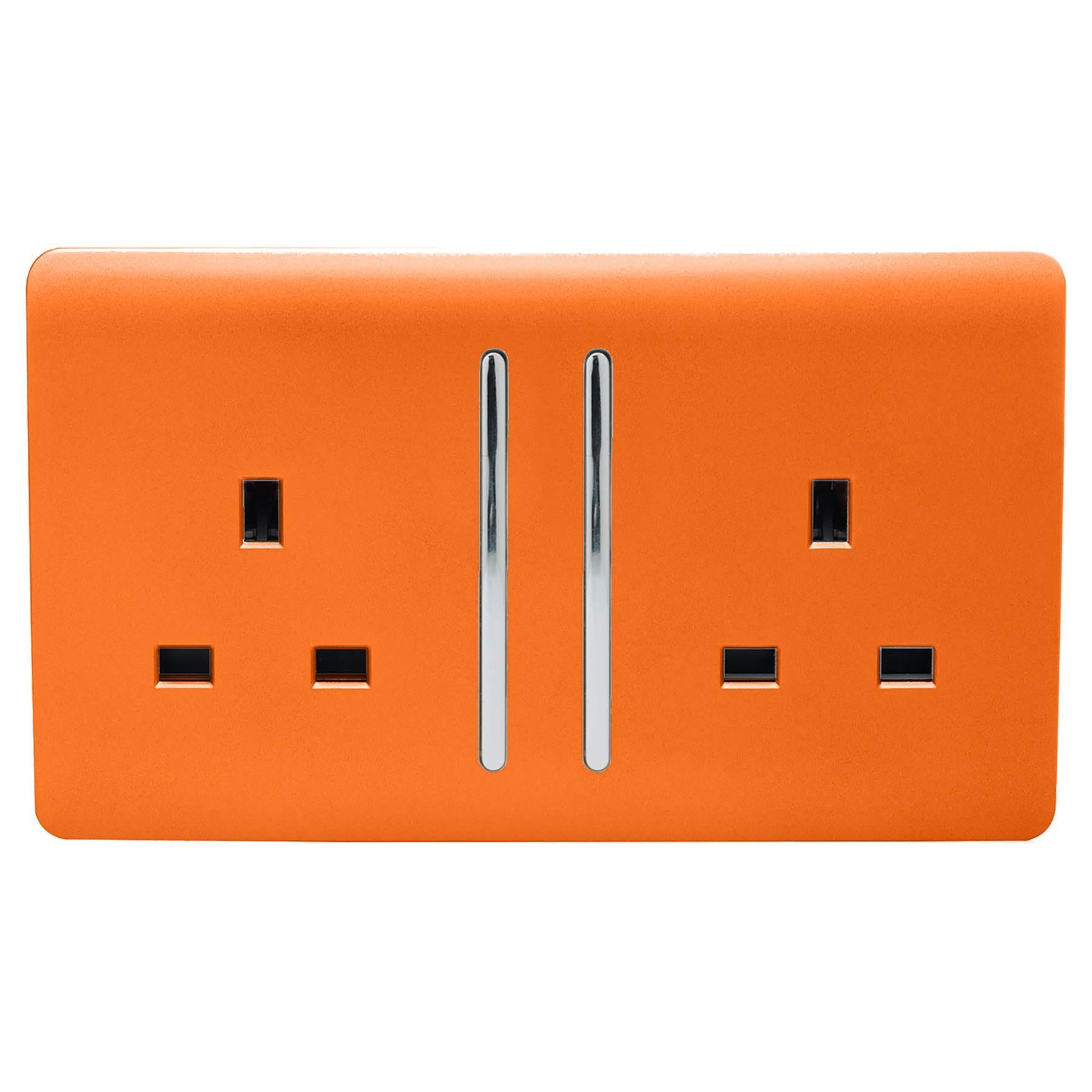 Trendi 2 Gang Artistic Modern Glossy 13 Amp Switched Plug Socket Orange (3 Pack)