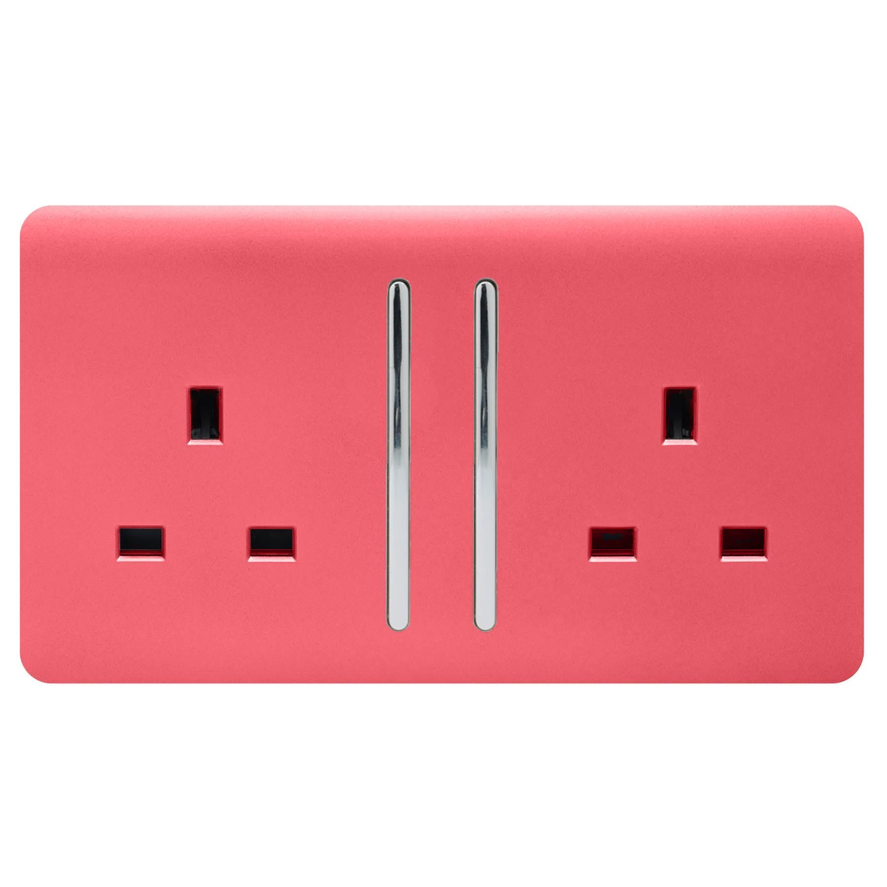 Trendi 2 Gang Artistic Modern Glossy 13 Amp Switched Plug Socket Strawberry (3 Pack)