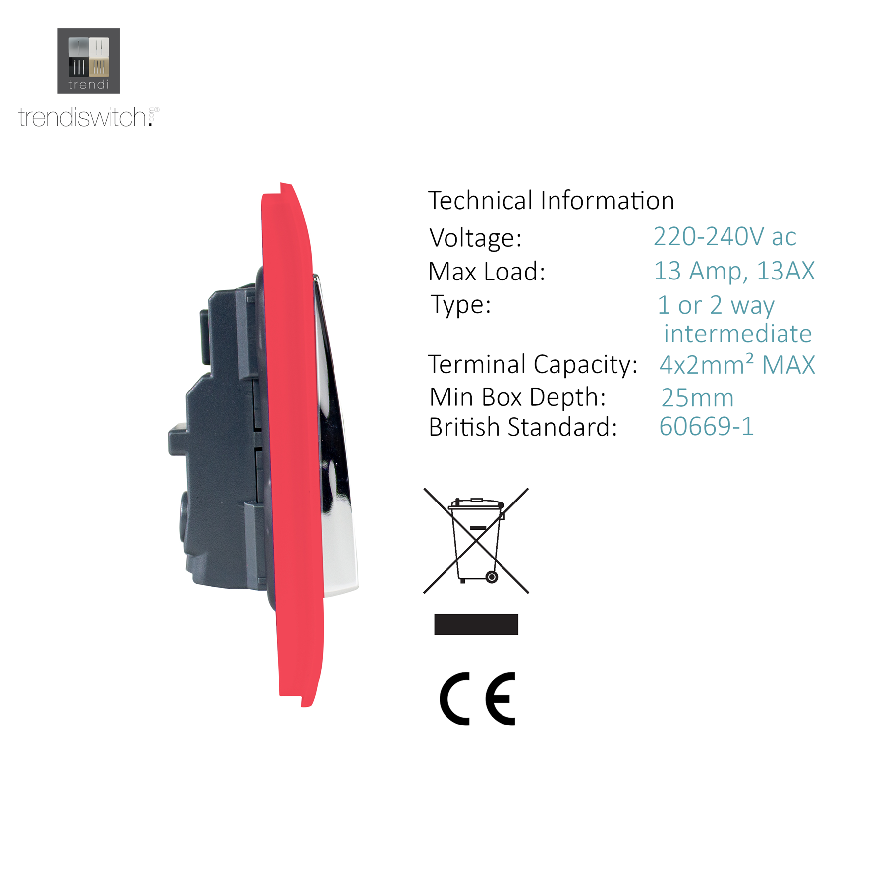 RECOMMENDED BACK BOX: 25mm or above