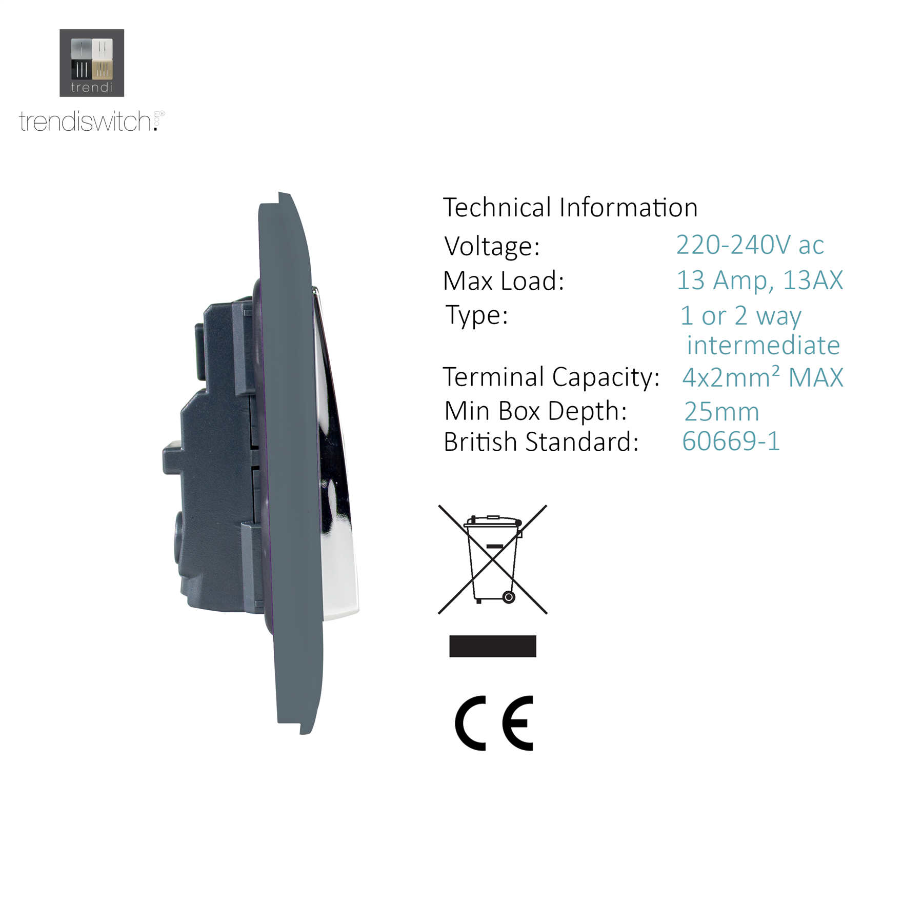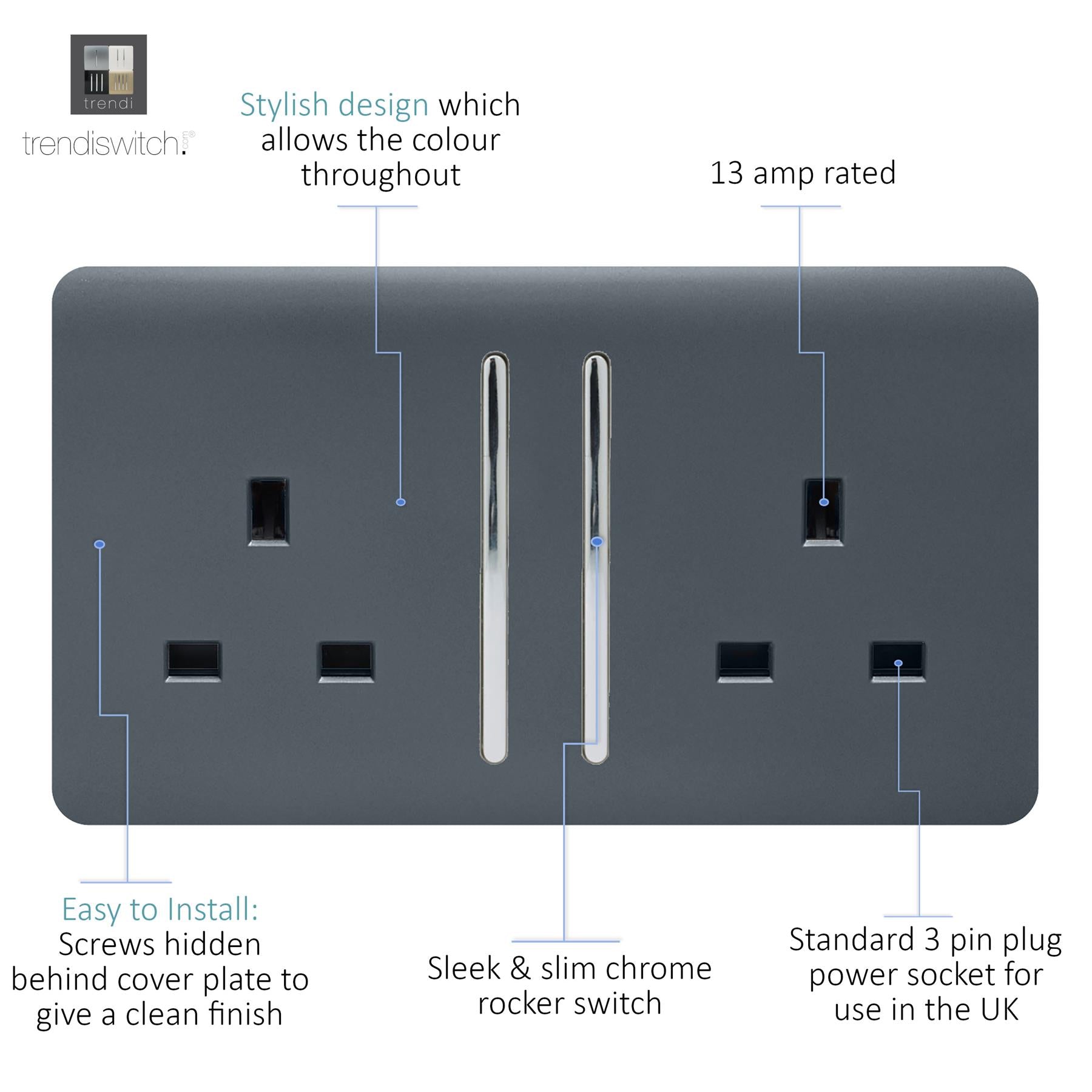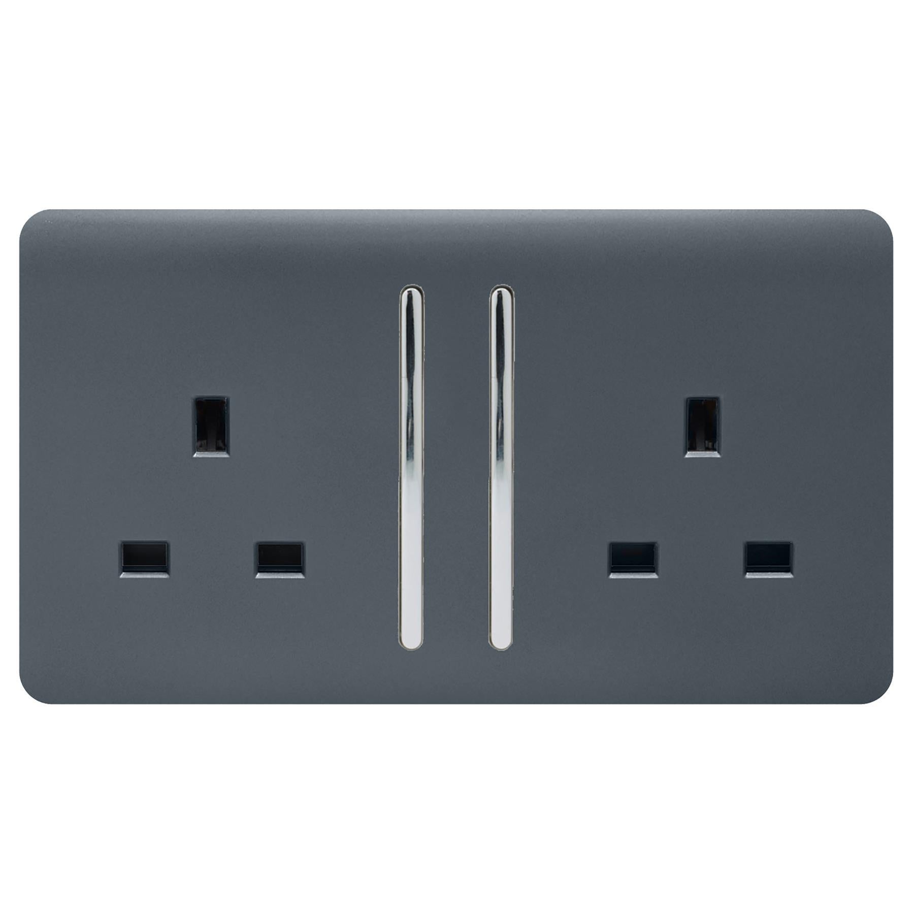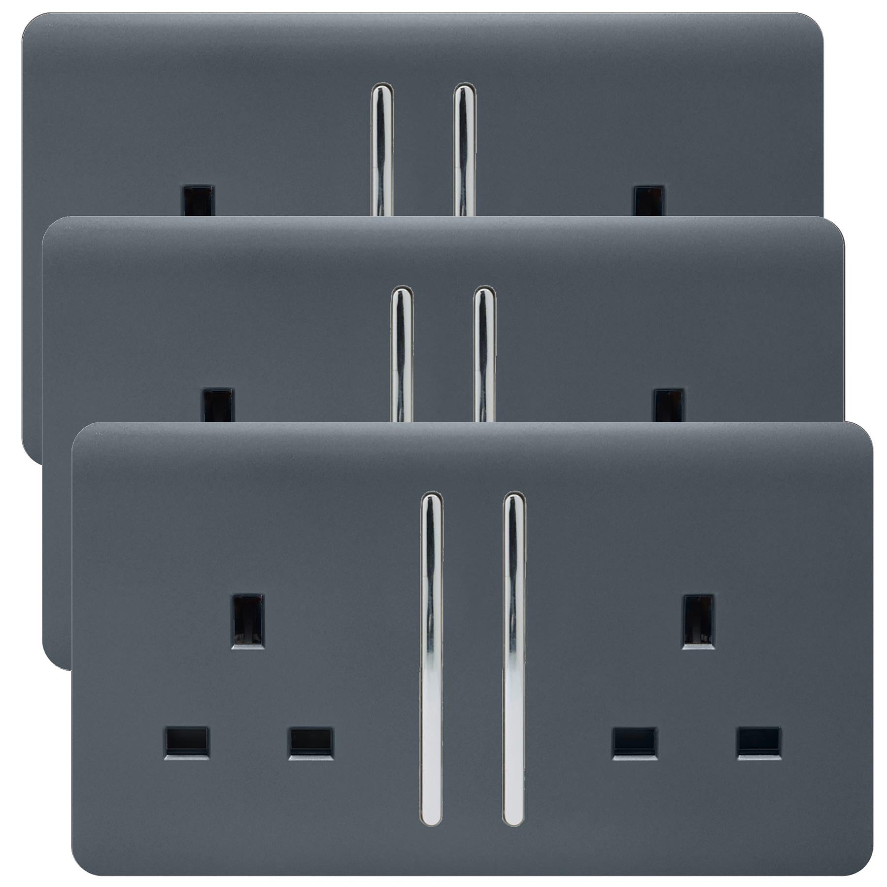 Trendi 2 Gang Artistic Modern Glossy 13 Amp Switched Plug Socket Warm Grey (3 Pack)