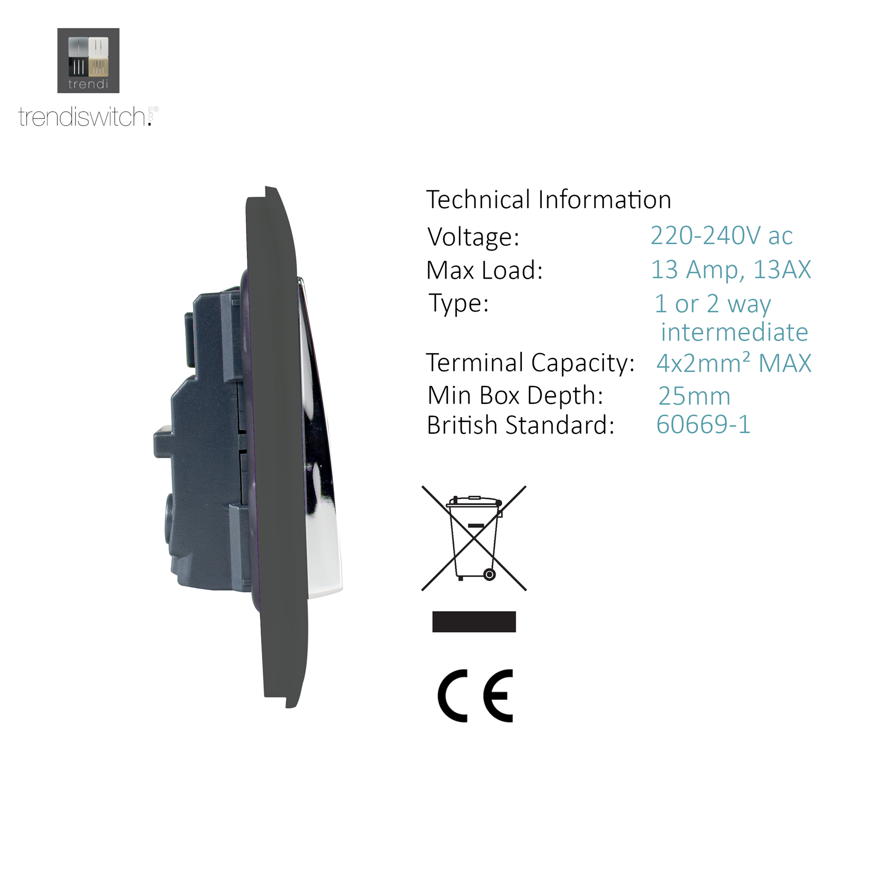 RECOMMENDED BACK BOX: 25mm or above