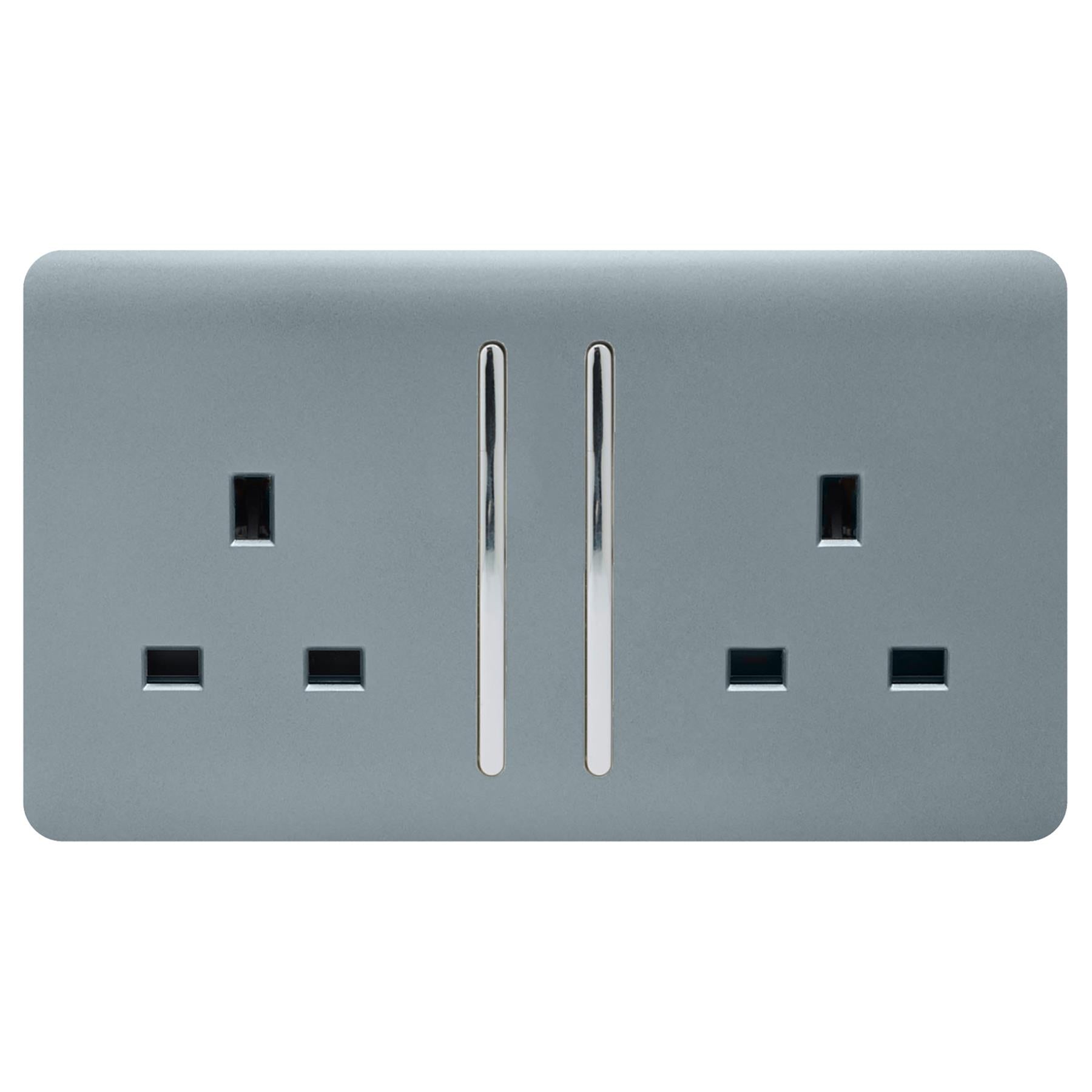 Trendi 2 Gang Artistic Modern Glossy 13 Amp Switched Tactile Plug Socket Cool Grey (5 Pack)