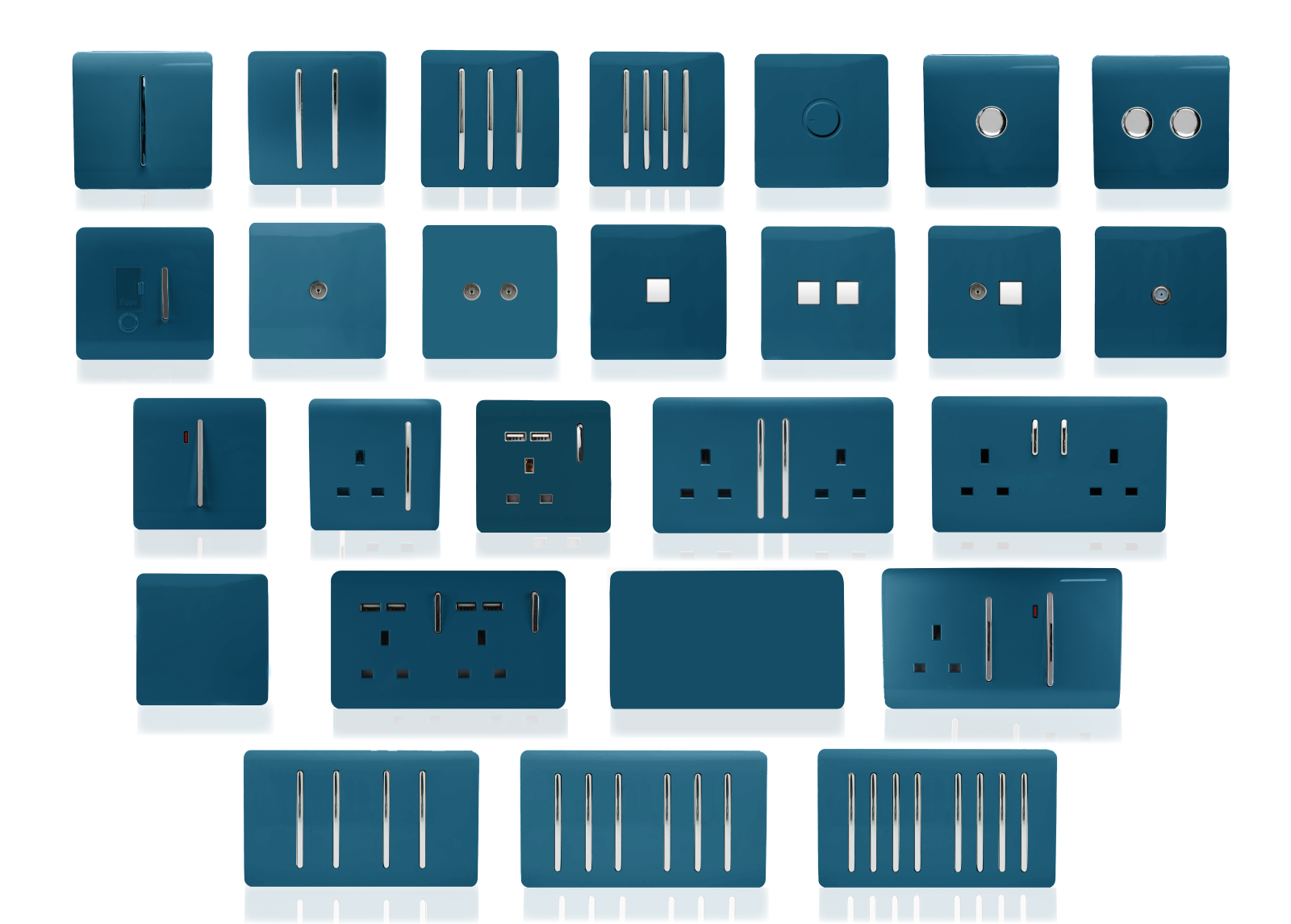 Trendi 2 Gang Artistic Modern Glossy 13 Amp Switched Tactile Plug Socket Midnight Blue (5 Pack)