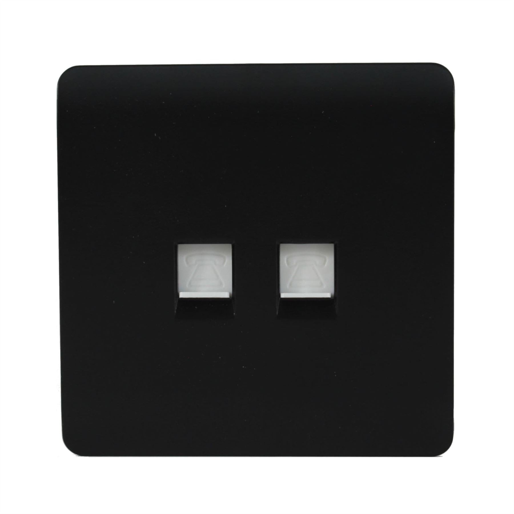 Trendi 2 Gang RJ45 Cat 6 PC Ethernet & Modern Designer Telephone Slave Sockets in Matt Black