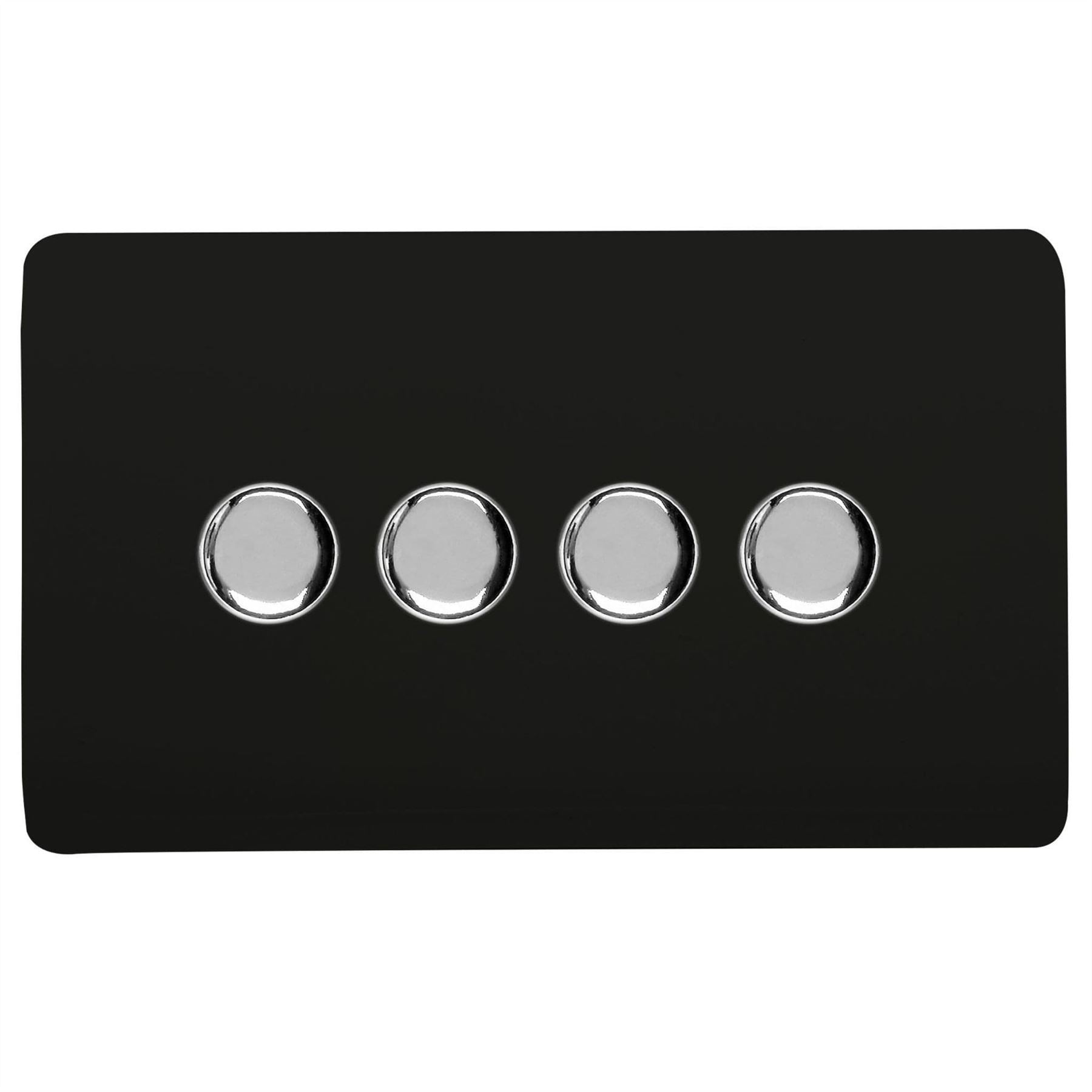 Trendi 4 Gang 2 Way 240V 100w LED Dimmer Screwless Raised Front Plate Plastic Artistic Modern Glossy 10 Amp Chrome Single Electrical Wall Light Switch in Matt Black - ART-4LDMMBK