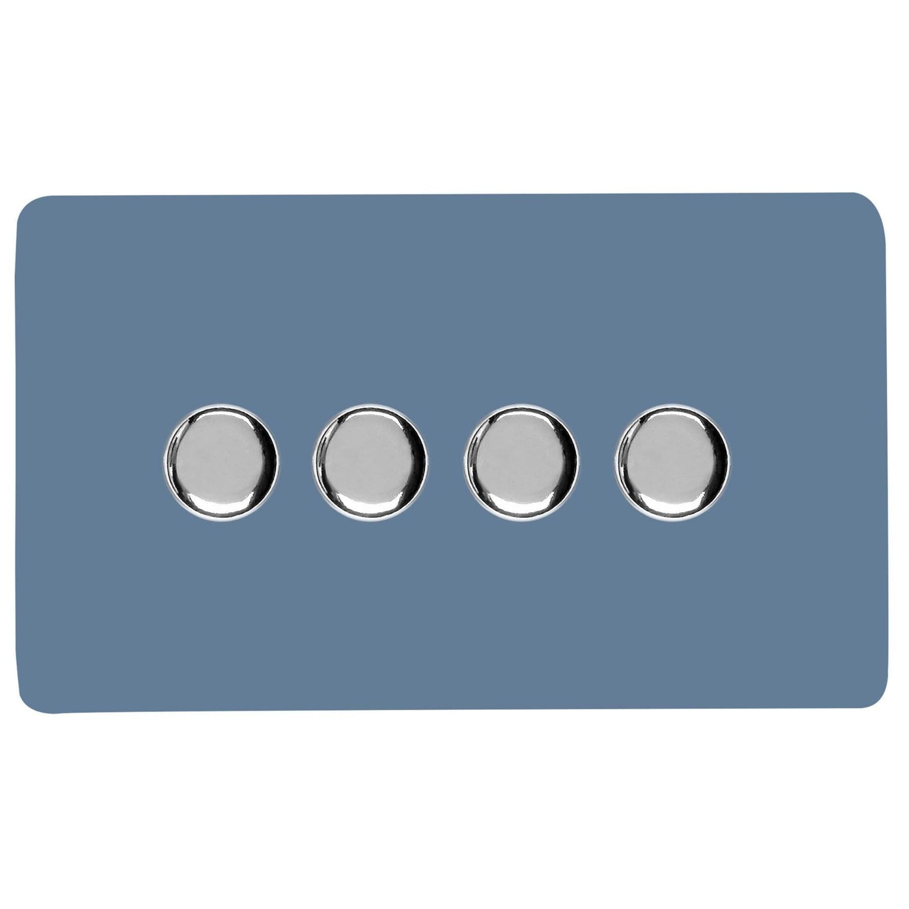 Trendi 4 Gang 2 Way 240V 100w LED Dimmer Screwless Raised Front Plate Plastic Artistic Modern Glossy 10 Amp Chrome Single Electrical Wall Light Switch in Sky - ART-4LDMSK