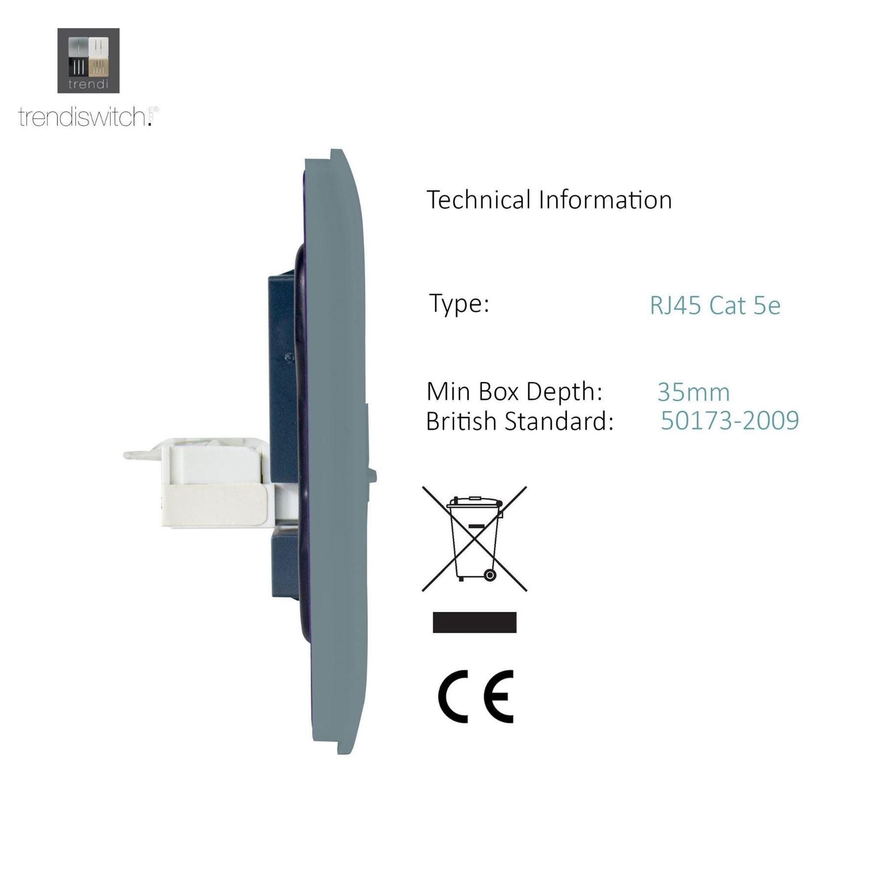 Trendi Artistic Modern Glossy 2 Gang Tactile RJ45 Cat 5e&Cat 6 PC Ethernet Socket Cool Grey