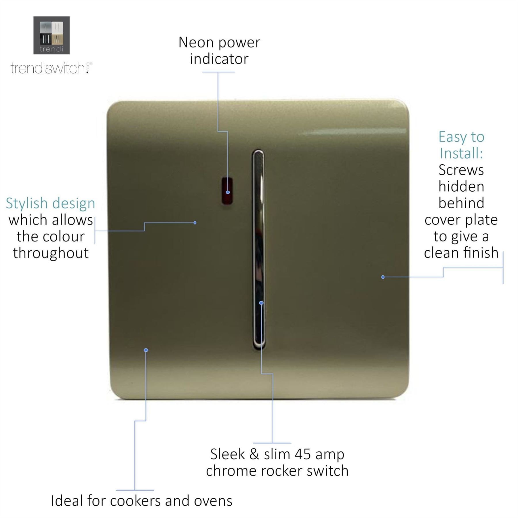Trendi Artistic Modern Glossy 20 A Light Switch & Neon Insert Gold ART-WHS1GO