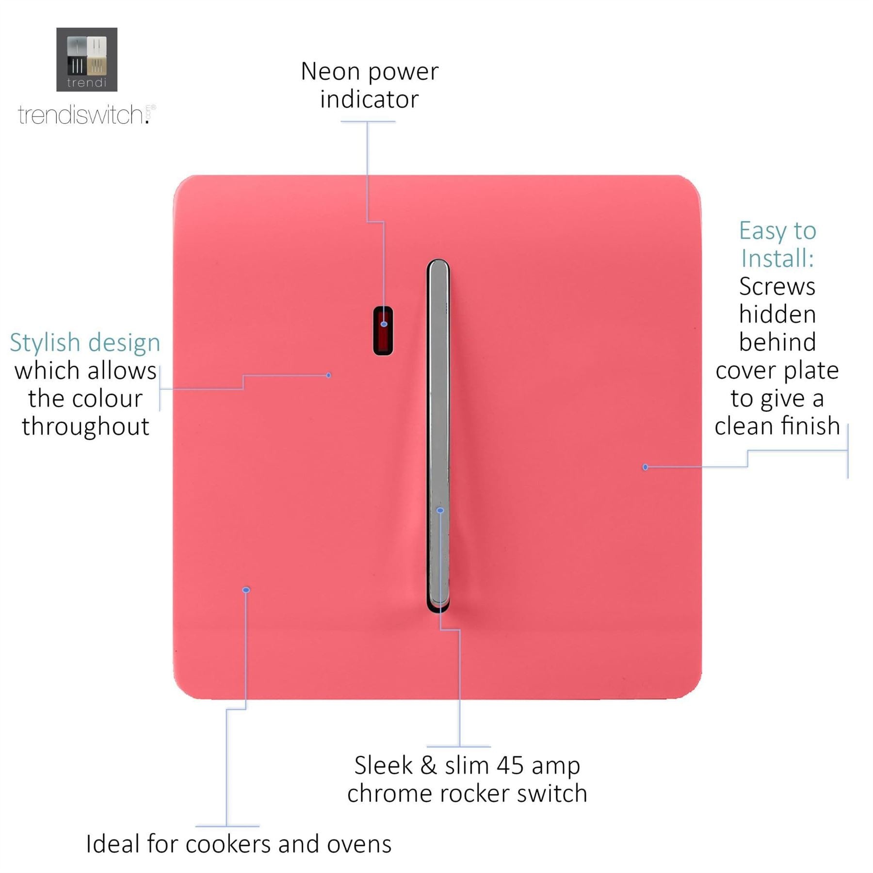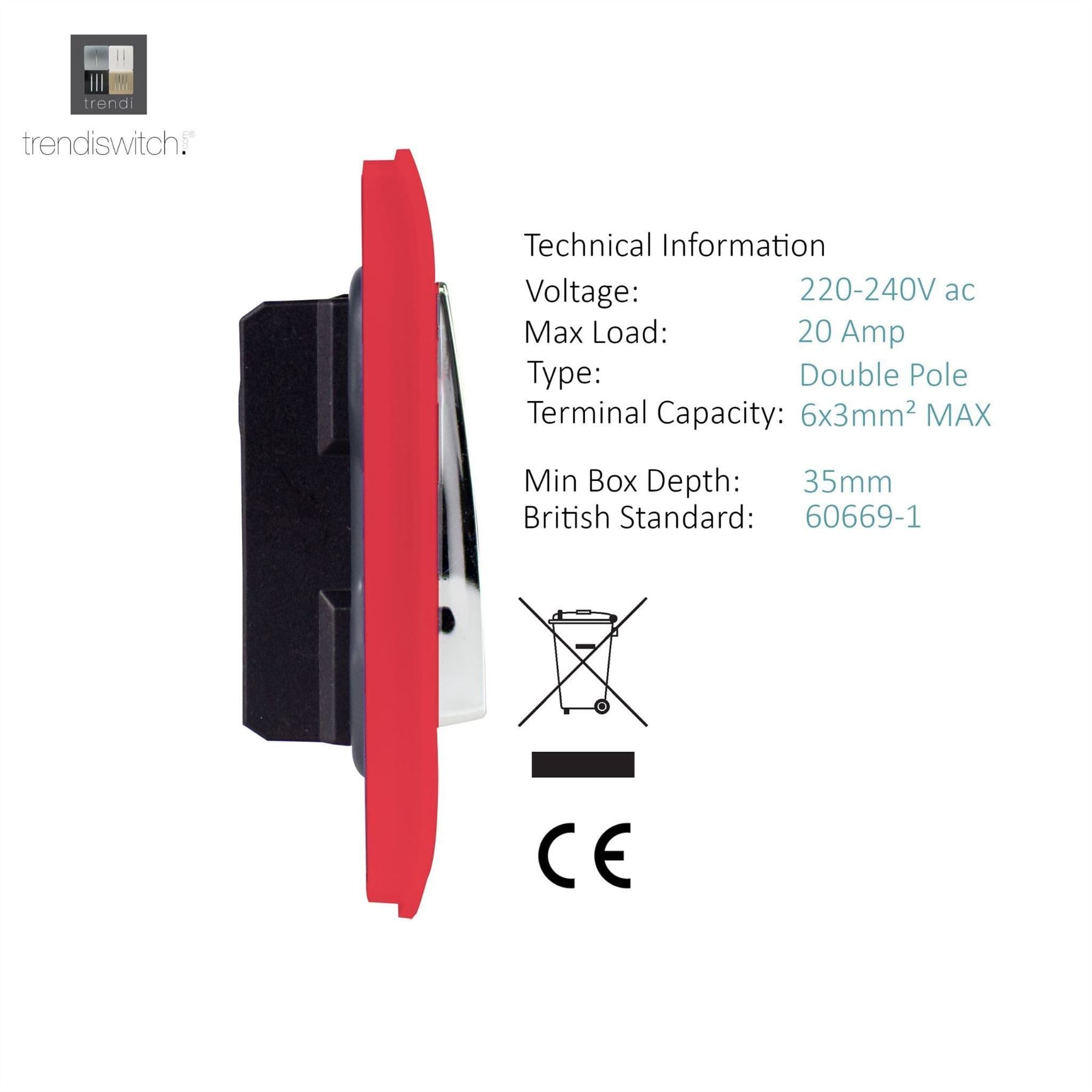 Trendi Artistic Modern Glossy 20 A Tactile Light Switch & Neon Insert Strawberry