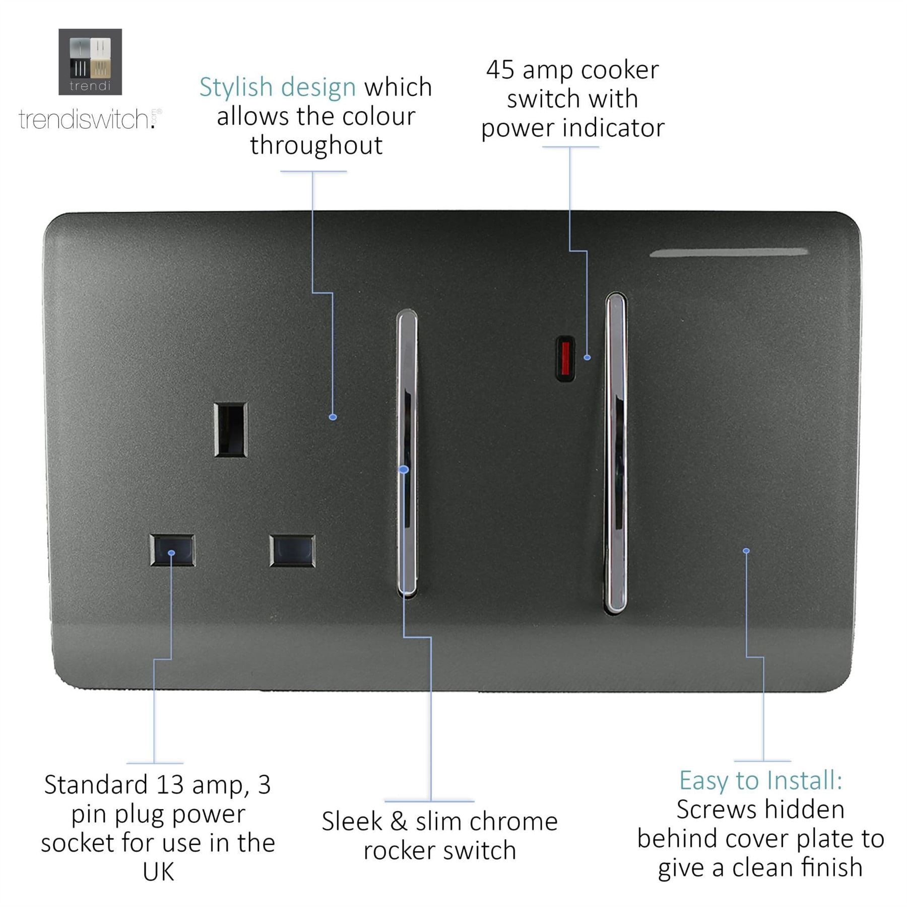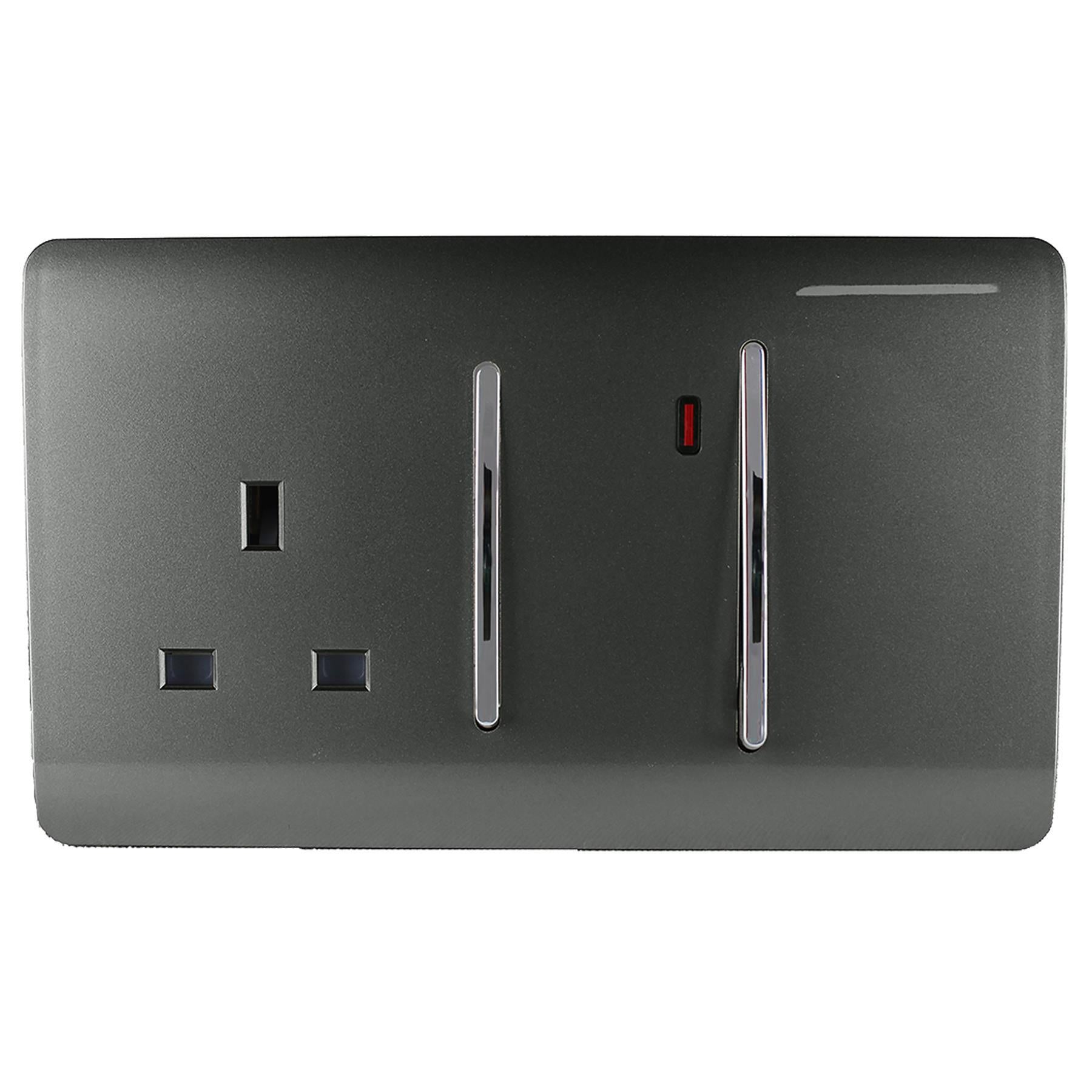 Trendi Artistic Modern Glossy 45 A Cooker Switch & Plug Socket Inc Neon Insert Charcoal