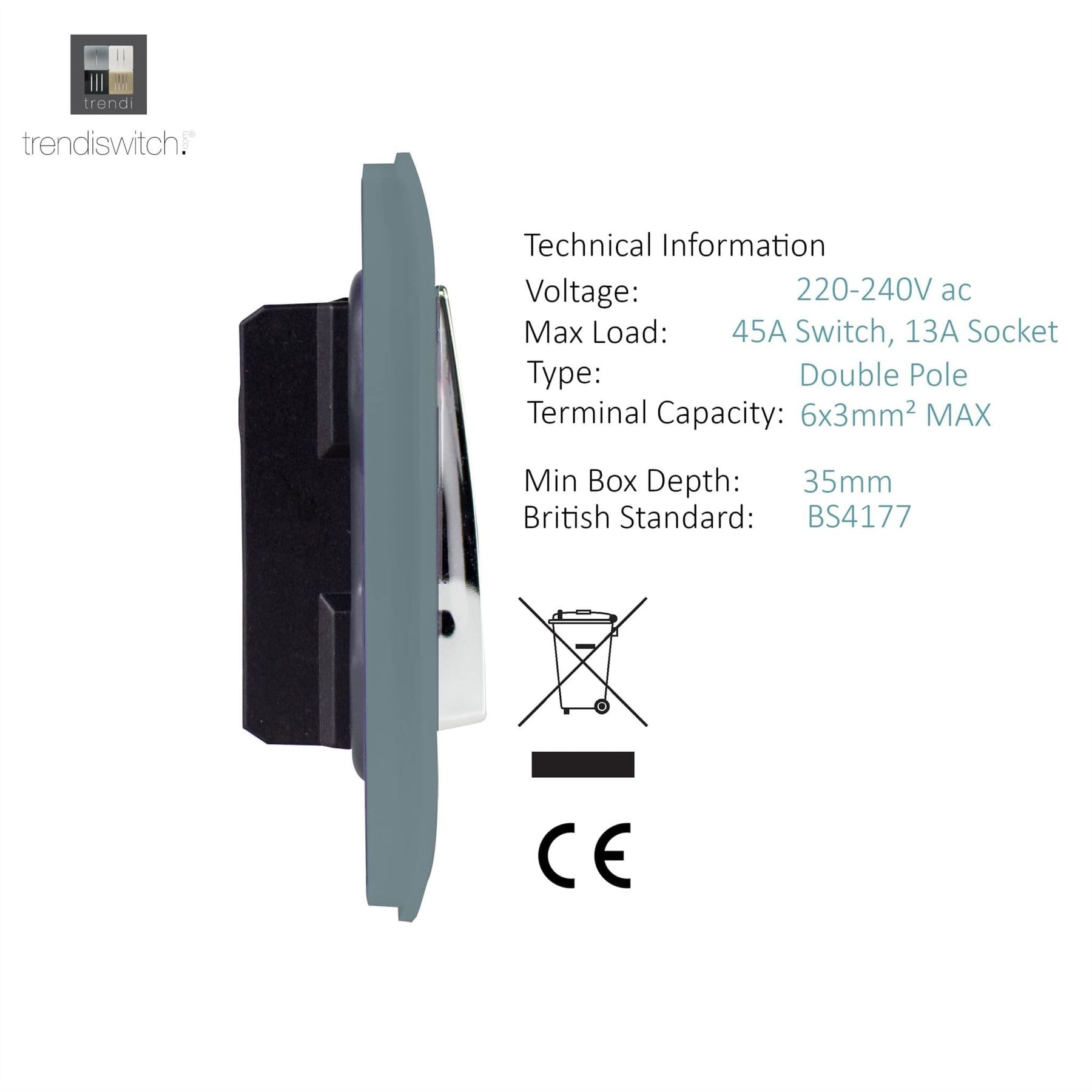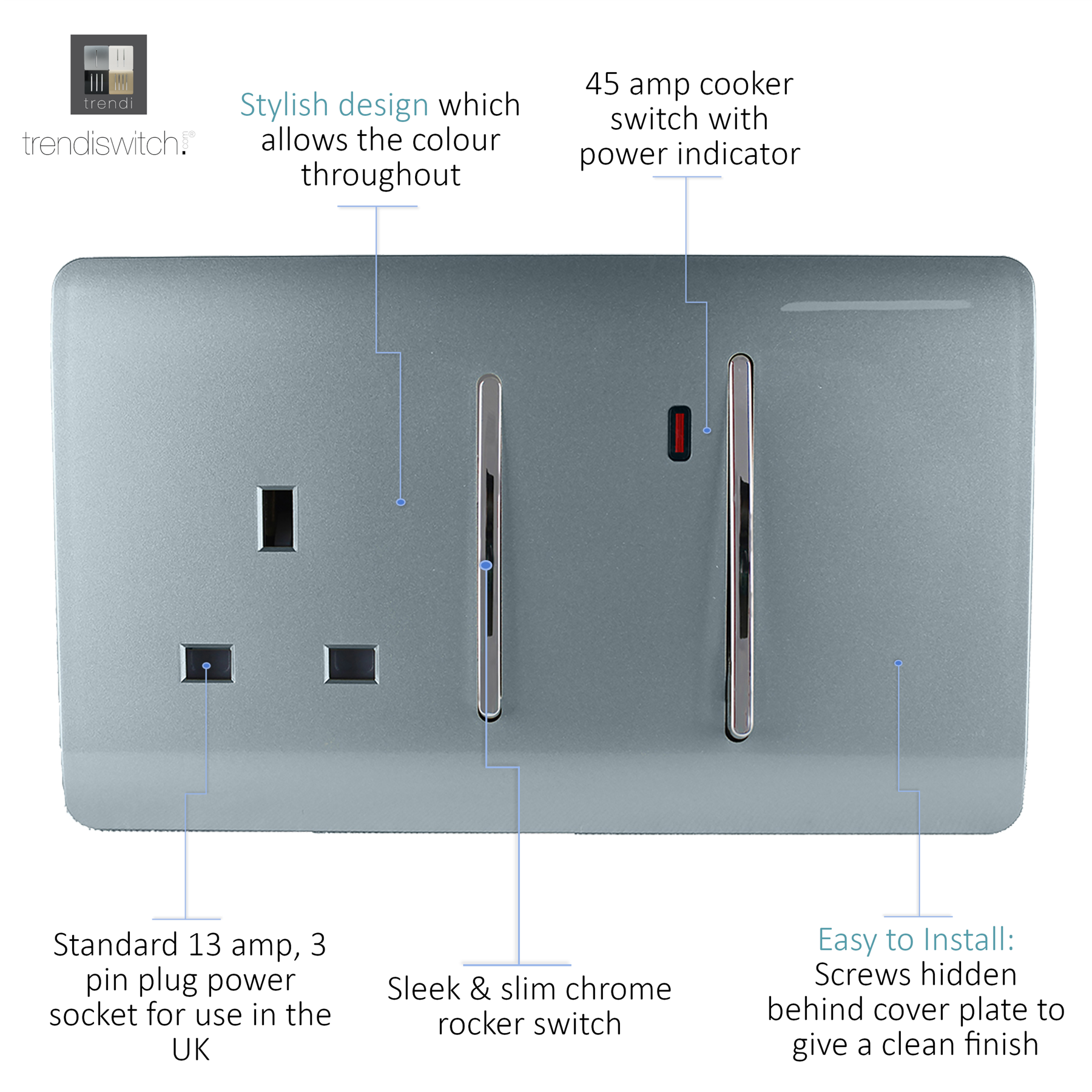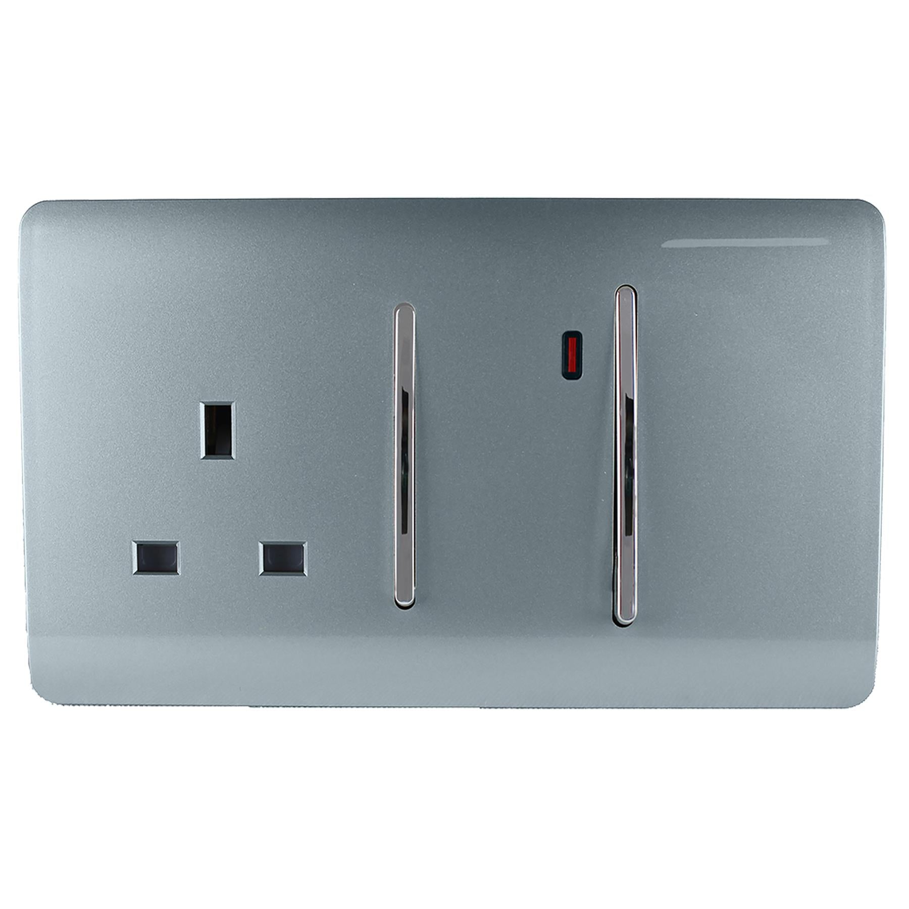 Trendi Artistic Modern Glossy 45 A Cooker Switch & Plug Socket Inc Neon Insert Cool Grey