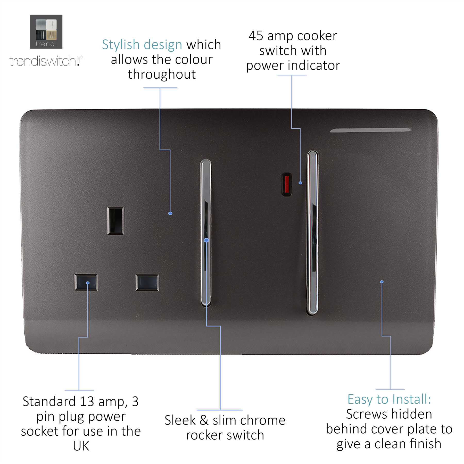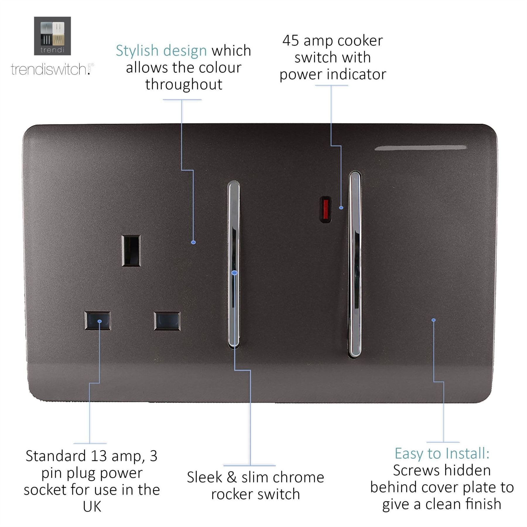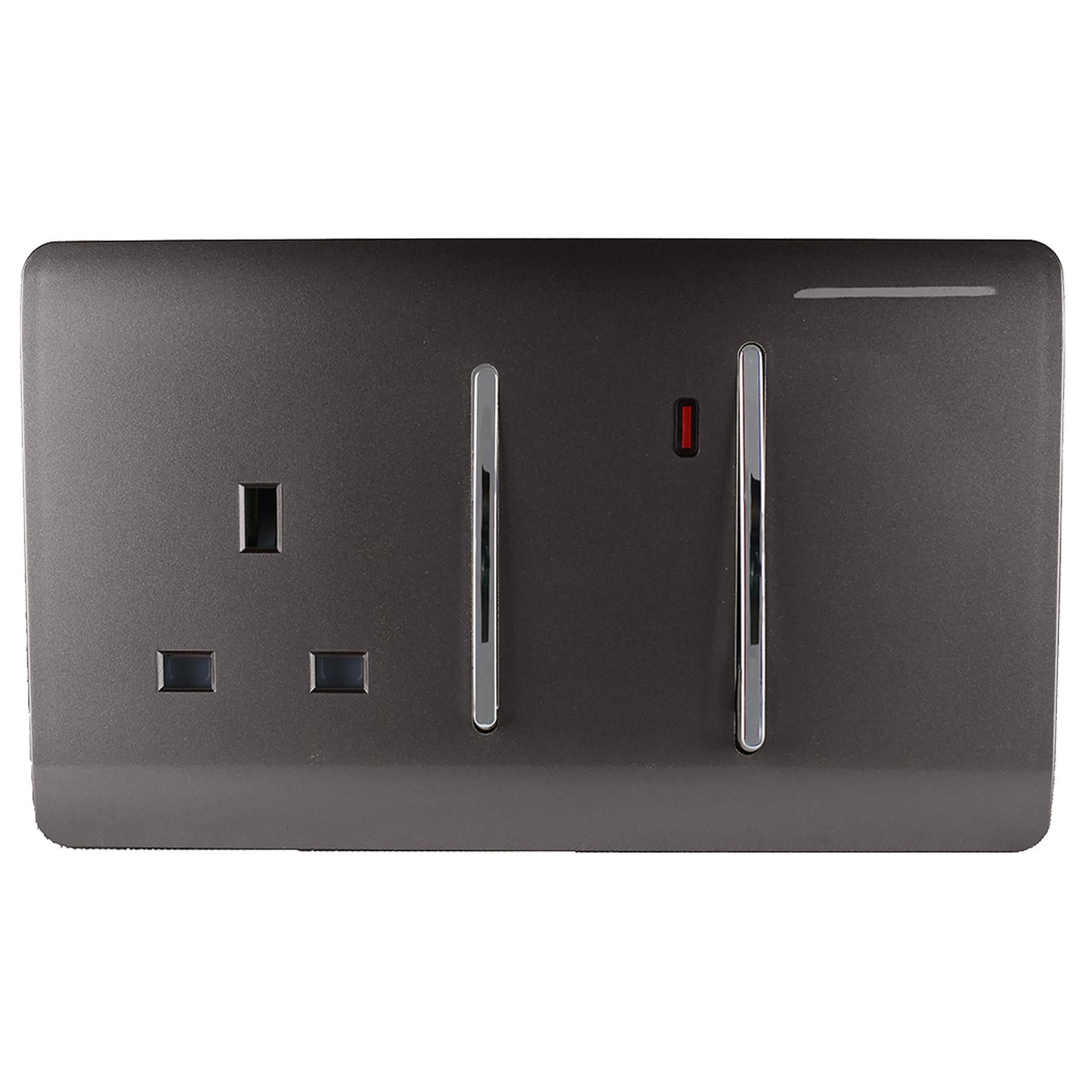 Trendi Artistic Modern Glossy 45 A Cooker Switch & Plug Socket Inc Neon Insert Dark Brown