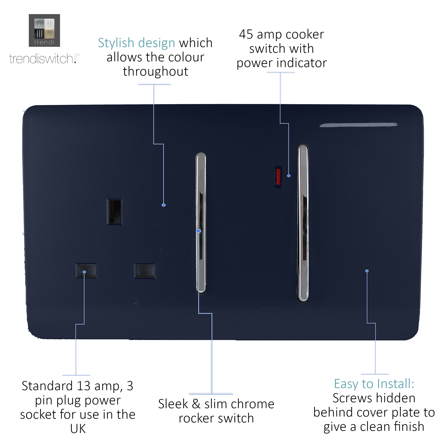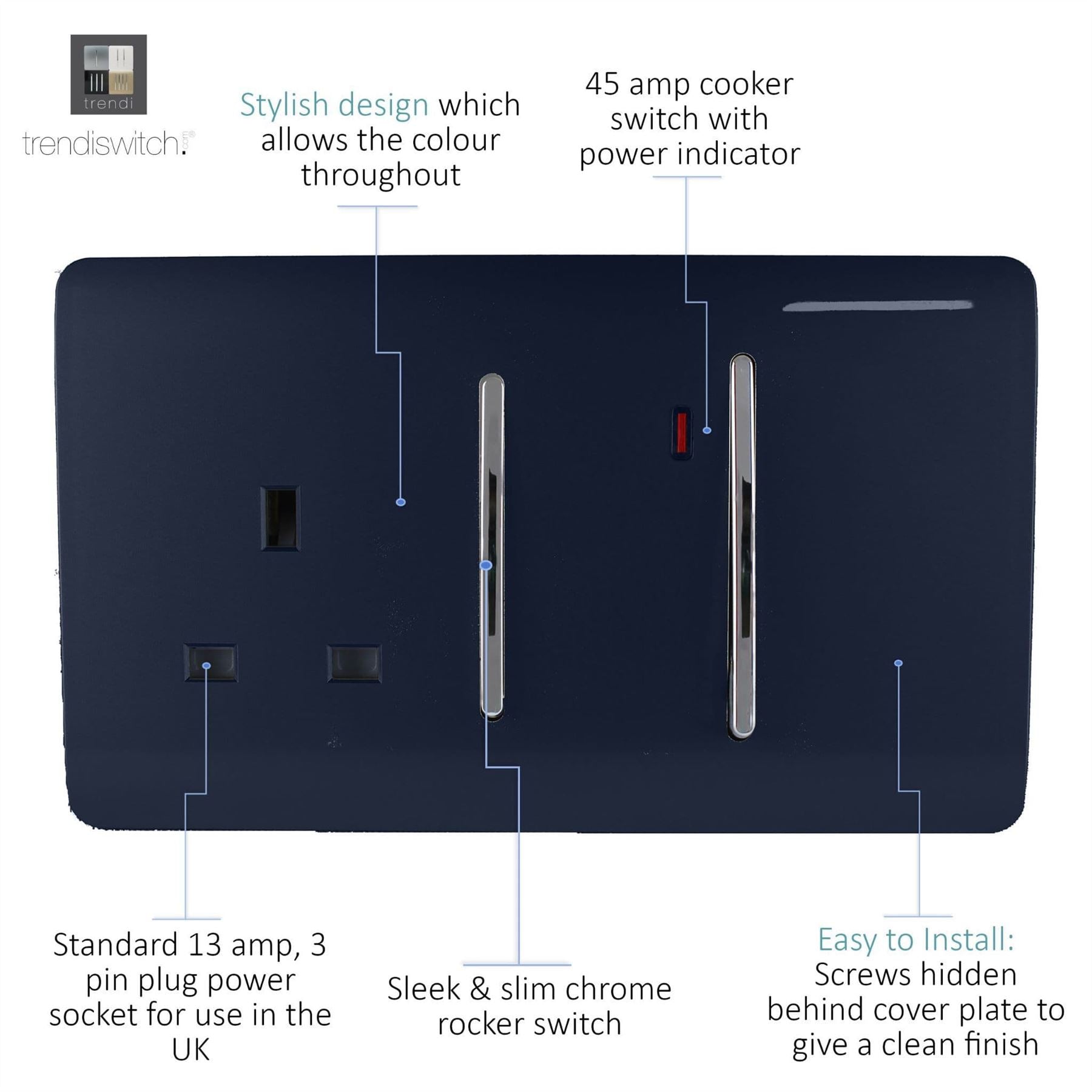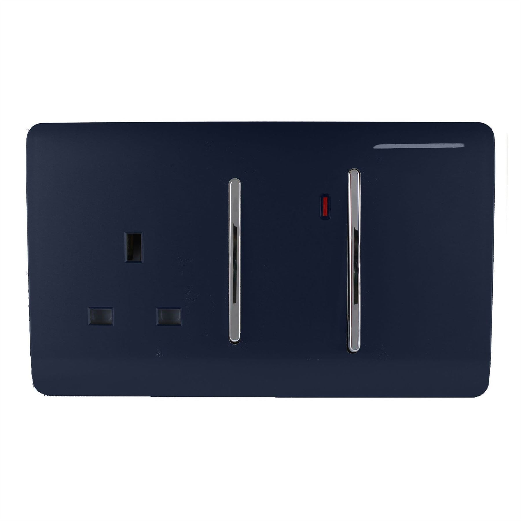 Trendi Artistic Modern Glossy 45 A Cooker Switch & Plug Socket Inc Neon Insert Navy