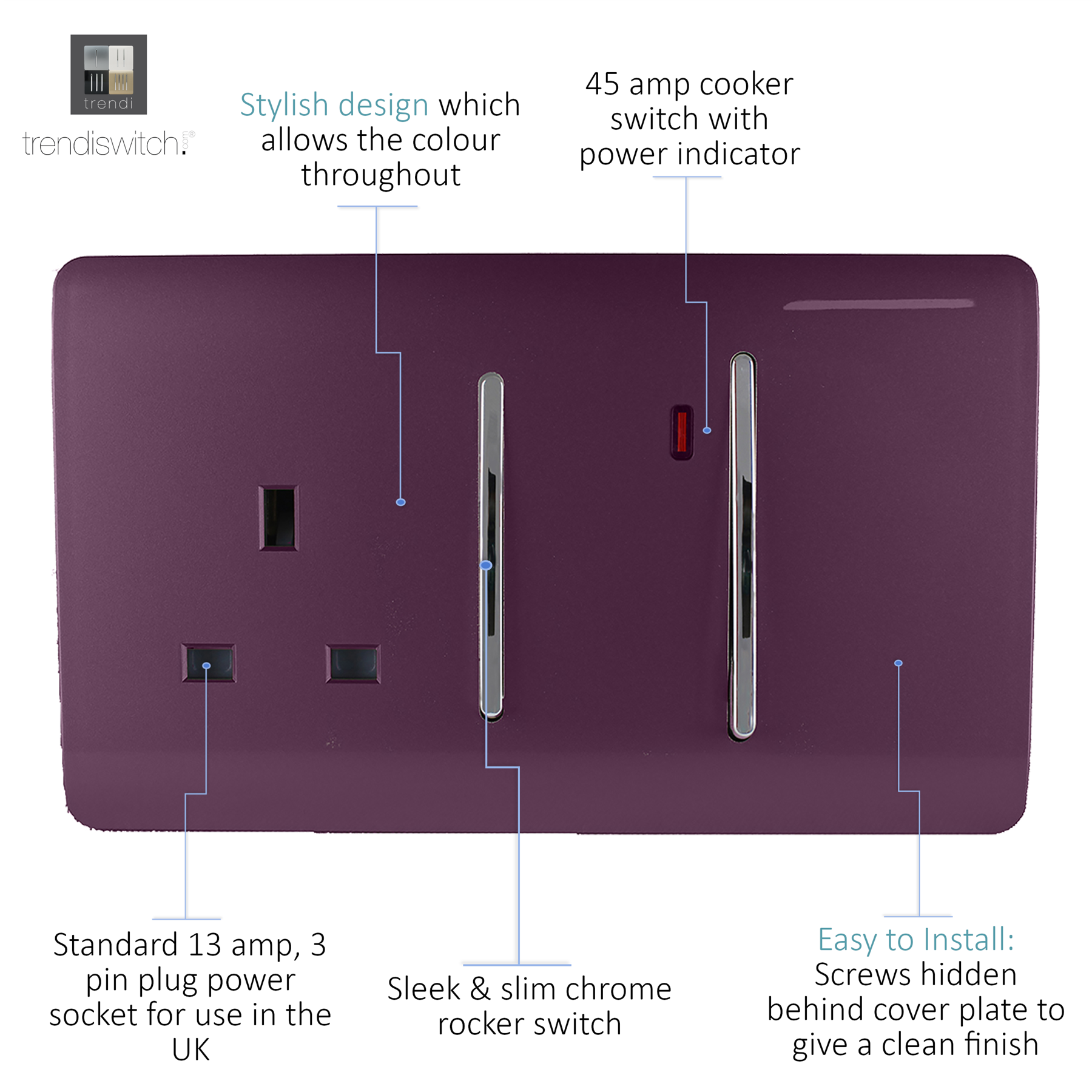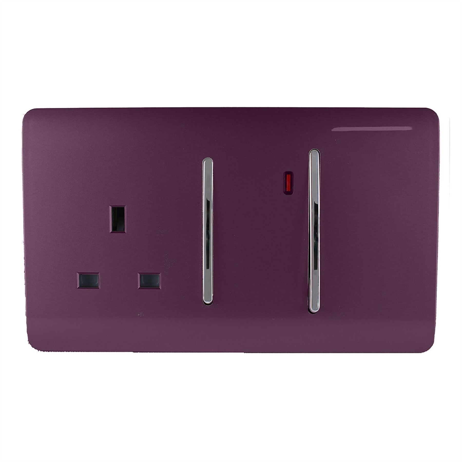 Trendi Artistic Modern Glossy 45 A Cooker Switch & Plug Socket Inc Neon Insert Plum