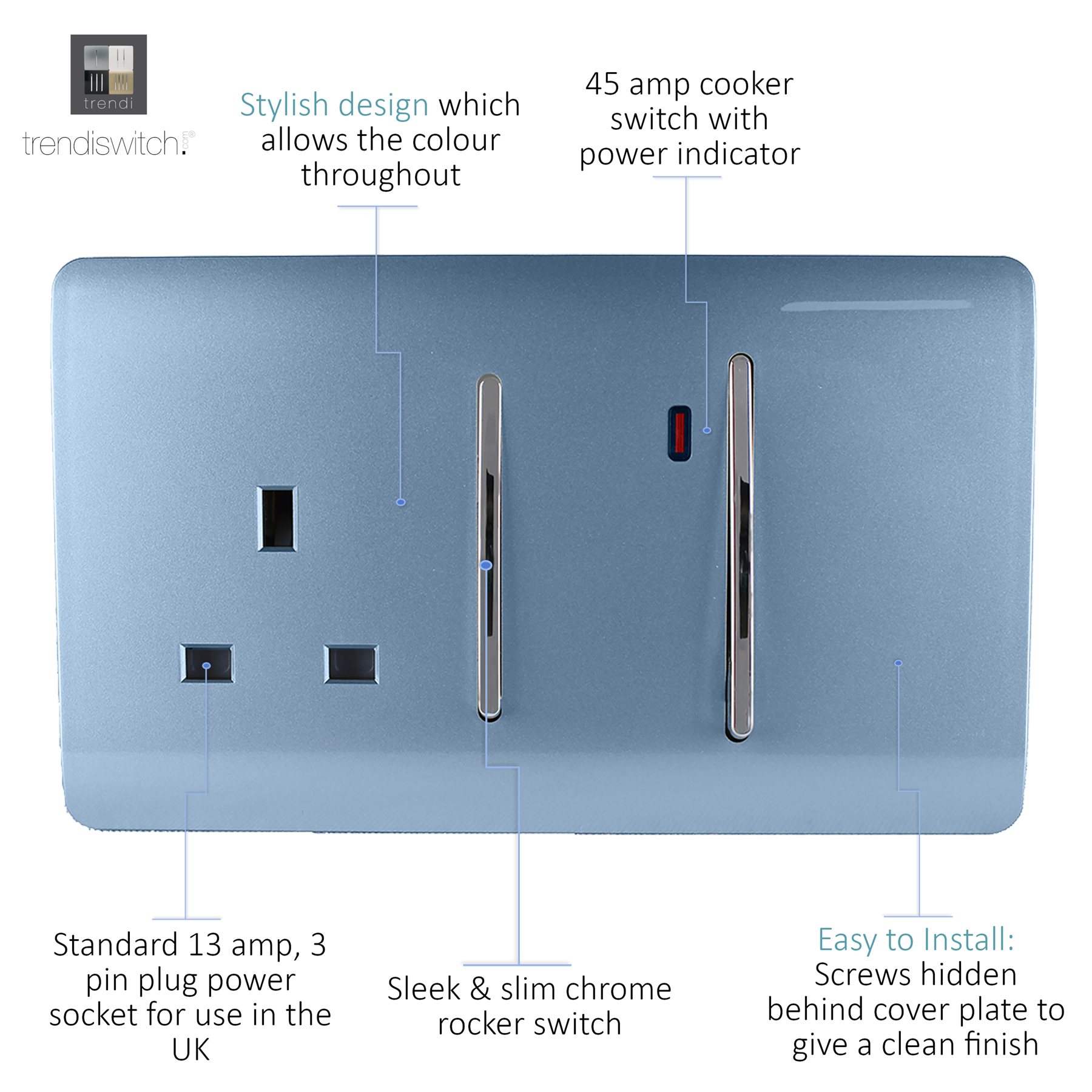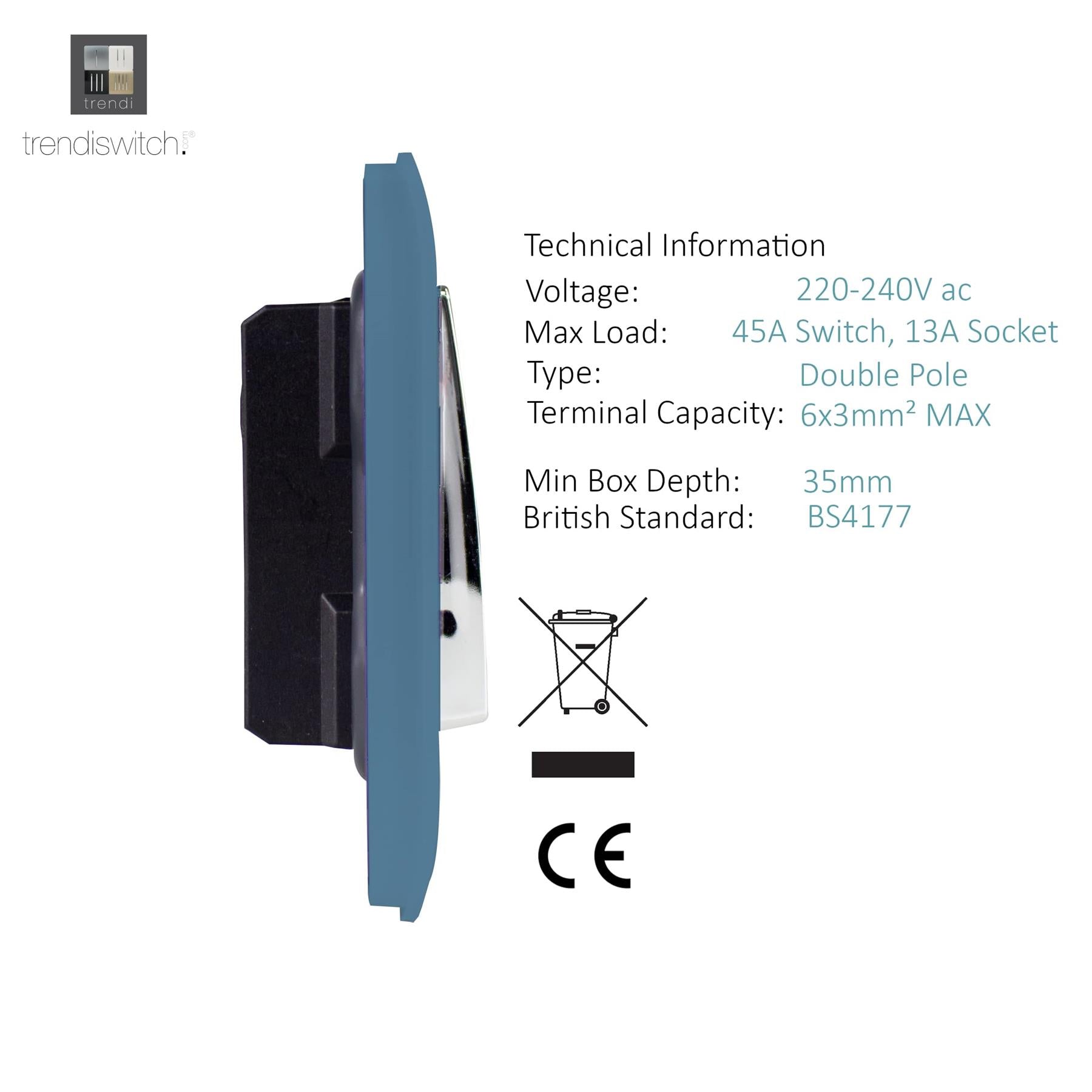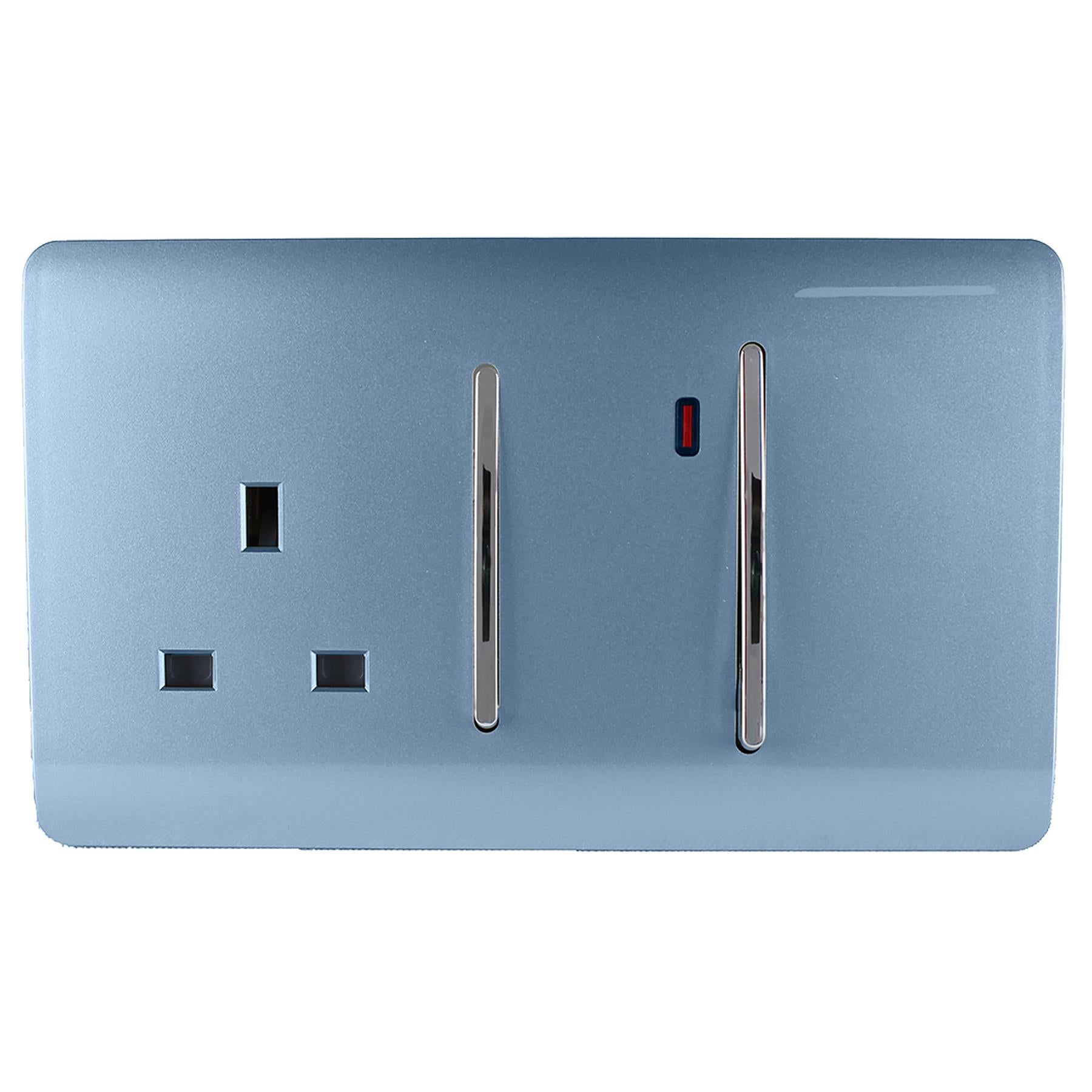 Trendi Artistic Modern Glossy 45 A Cooker Switch & Plug Socket Inc Neon Insert Sky