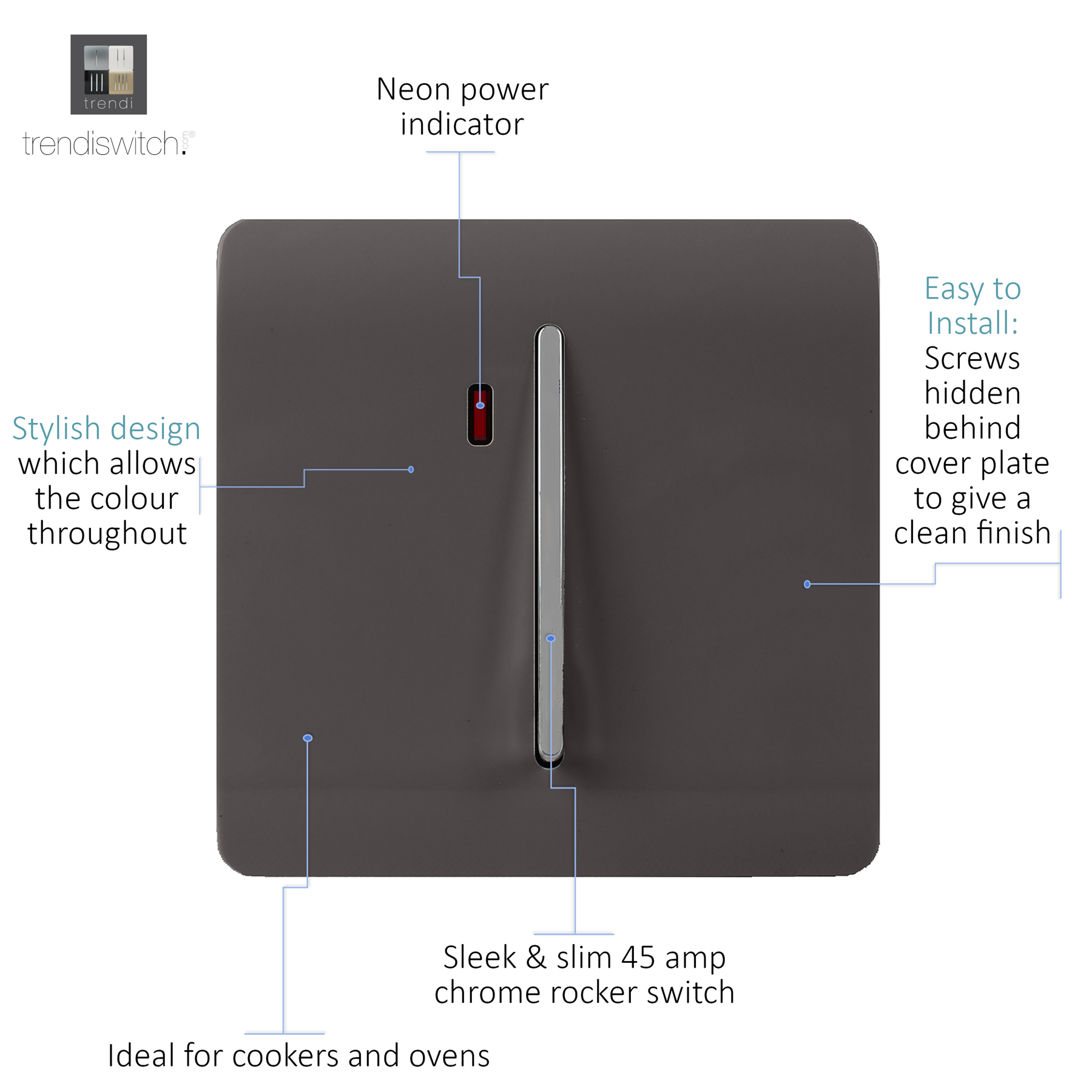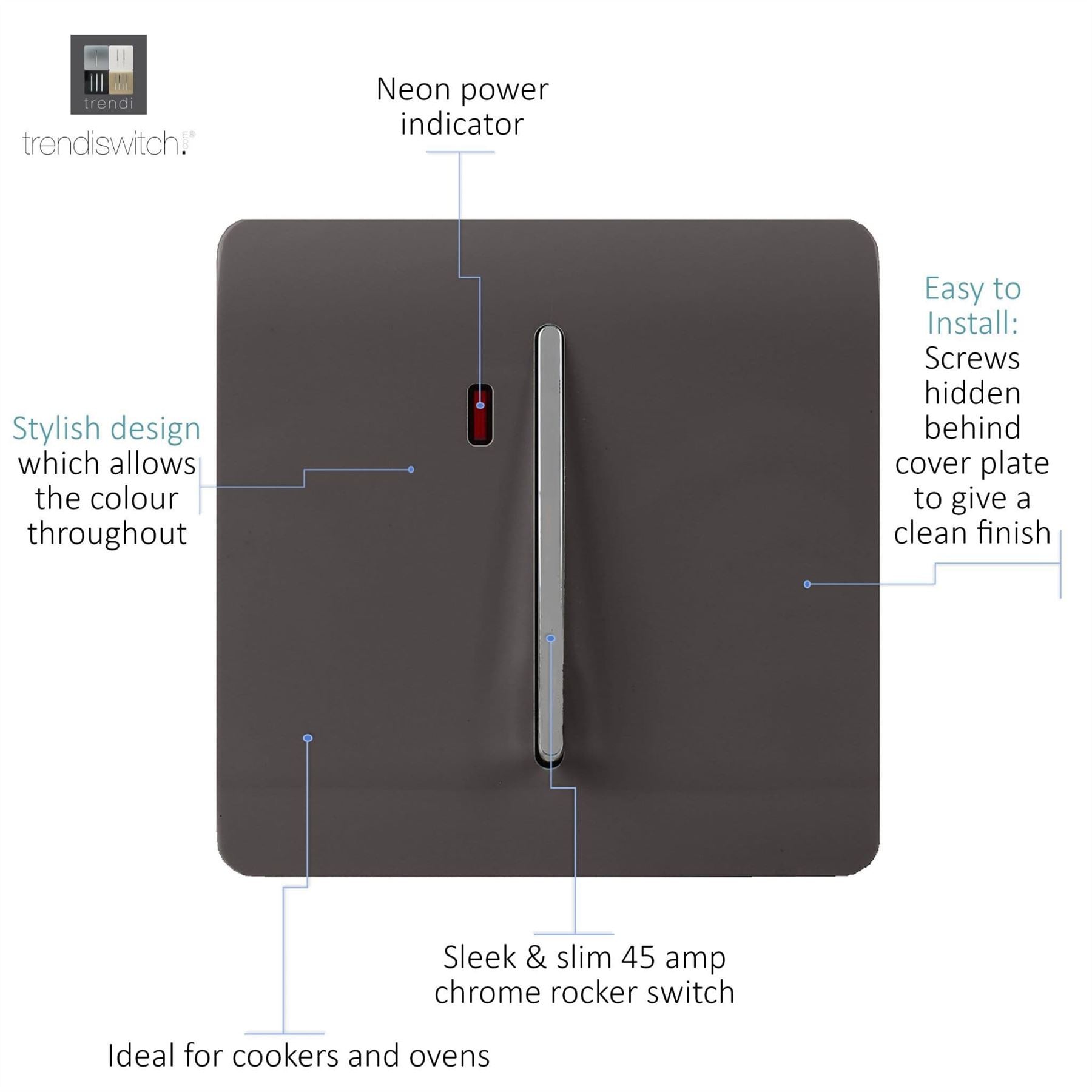 Trendi Artistic Modern Glossy 45 A Tactile Light Switch & Neon Insert Dark Brown