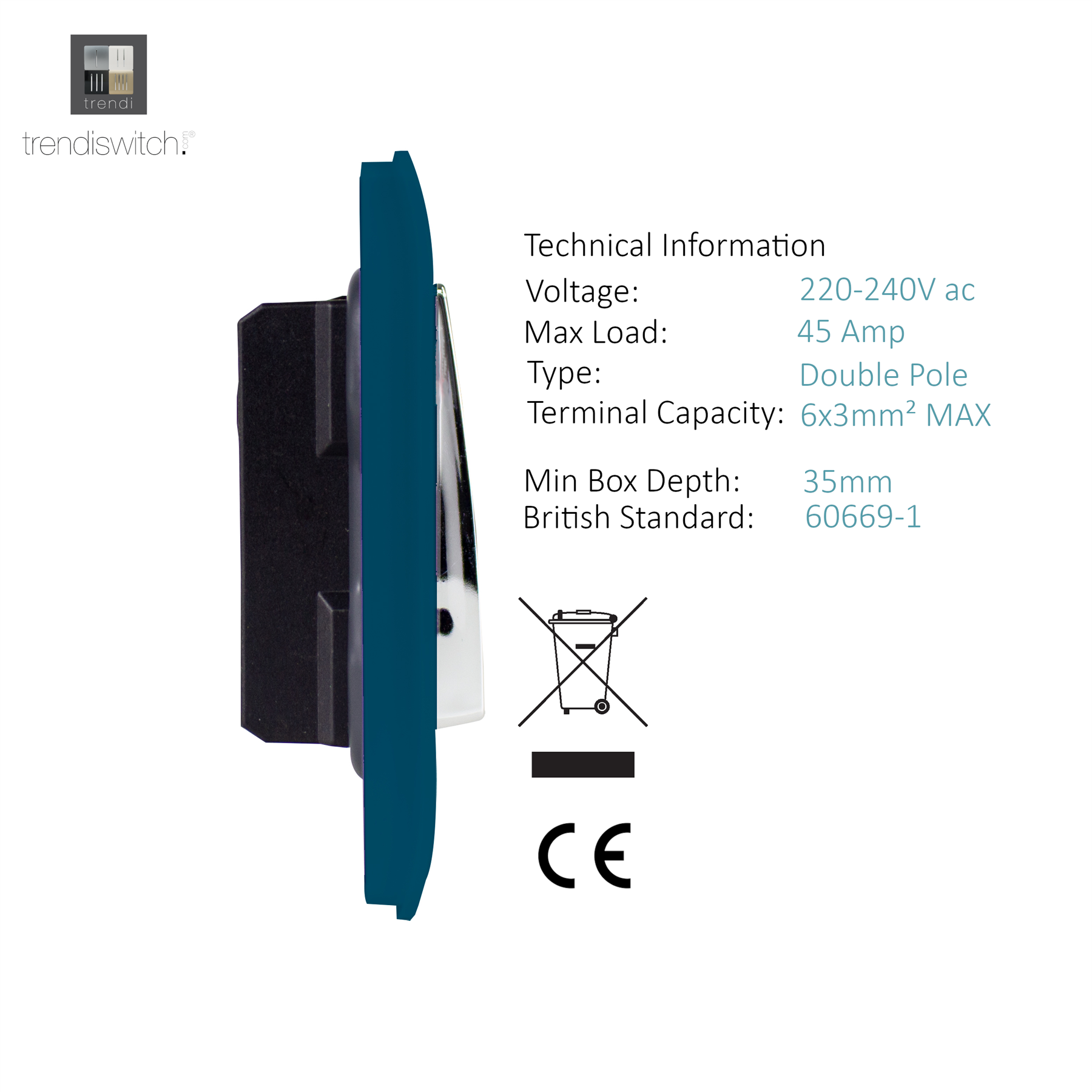 Trendi Artistic Modern Glossy 45 A Tactile Light Switch & Neon Insert Midnight Blue