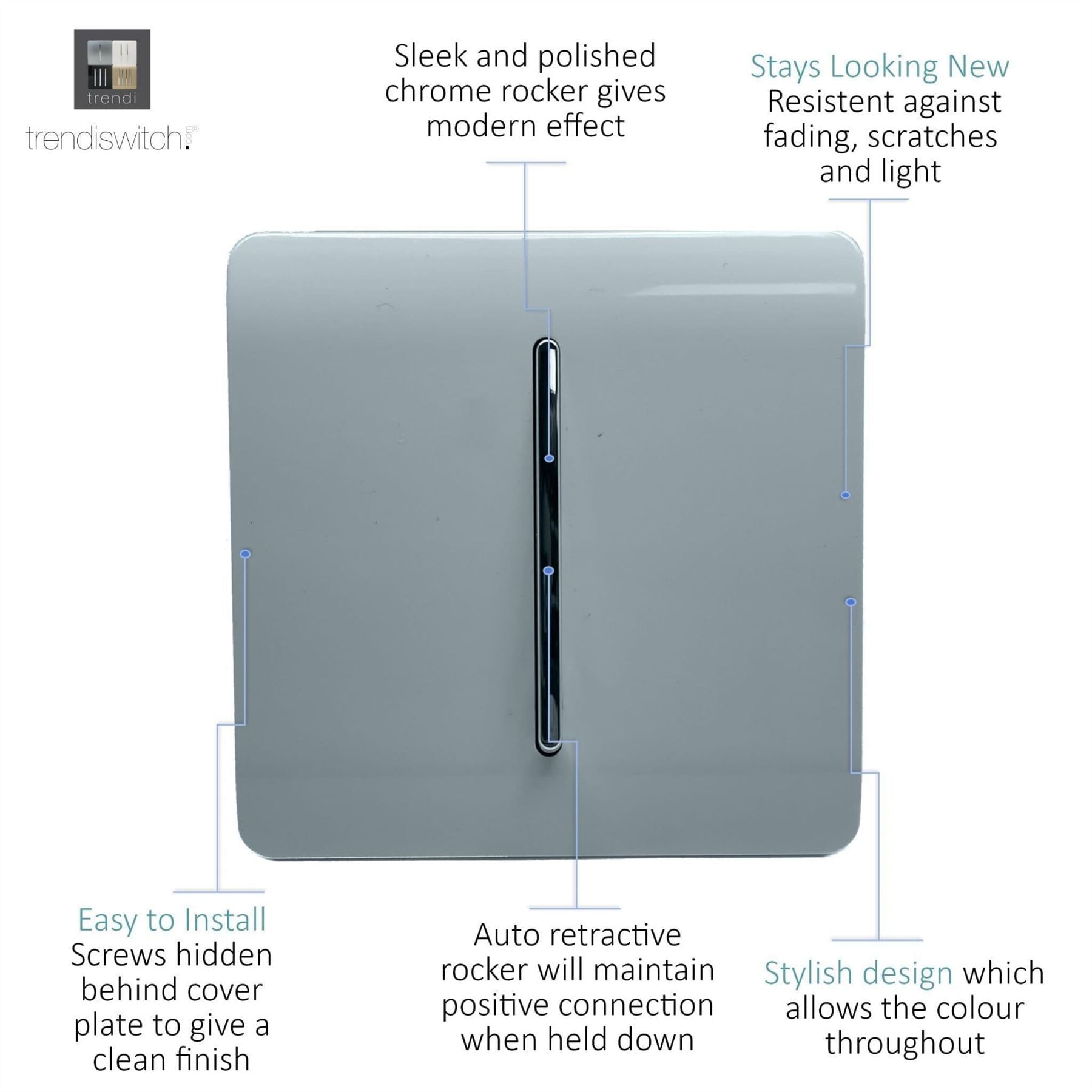 Trendi Artistic Modern Glossy Home Automation Switch Cool Grey
