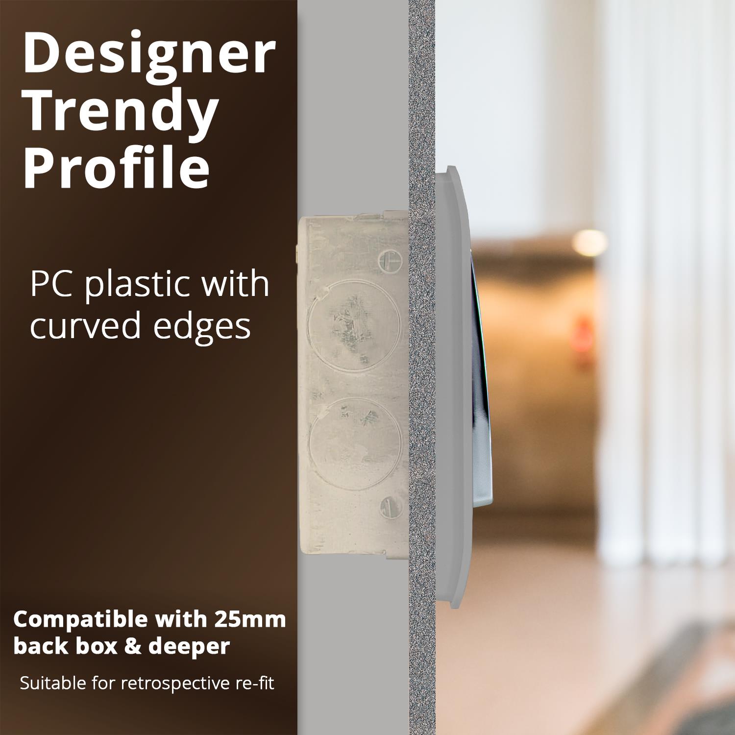 RECOMMENDED BACK BOX: 25mm or above