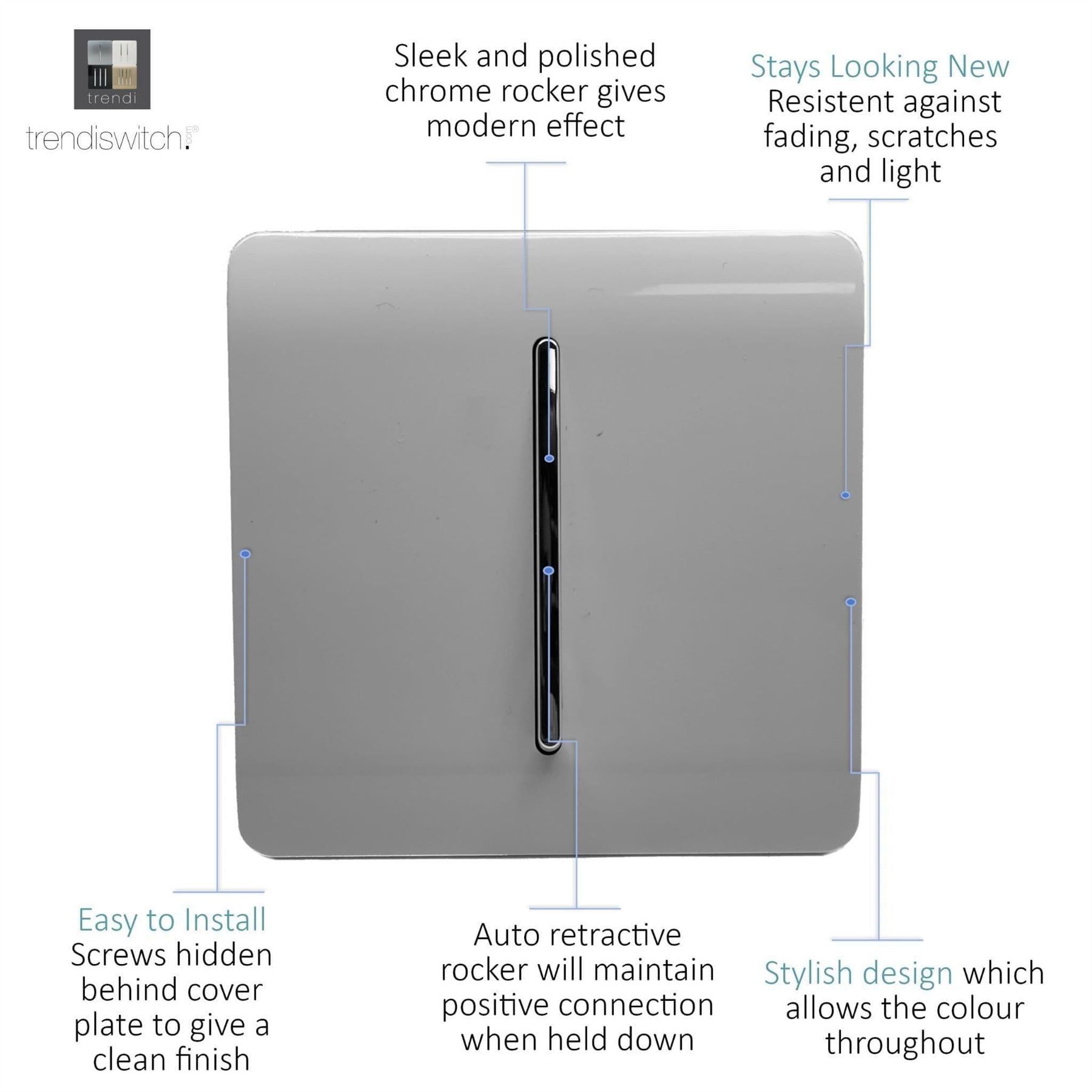 Trendi Artistic Modern Glossy Home Automation Switch Light Grey