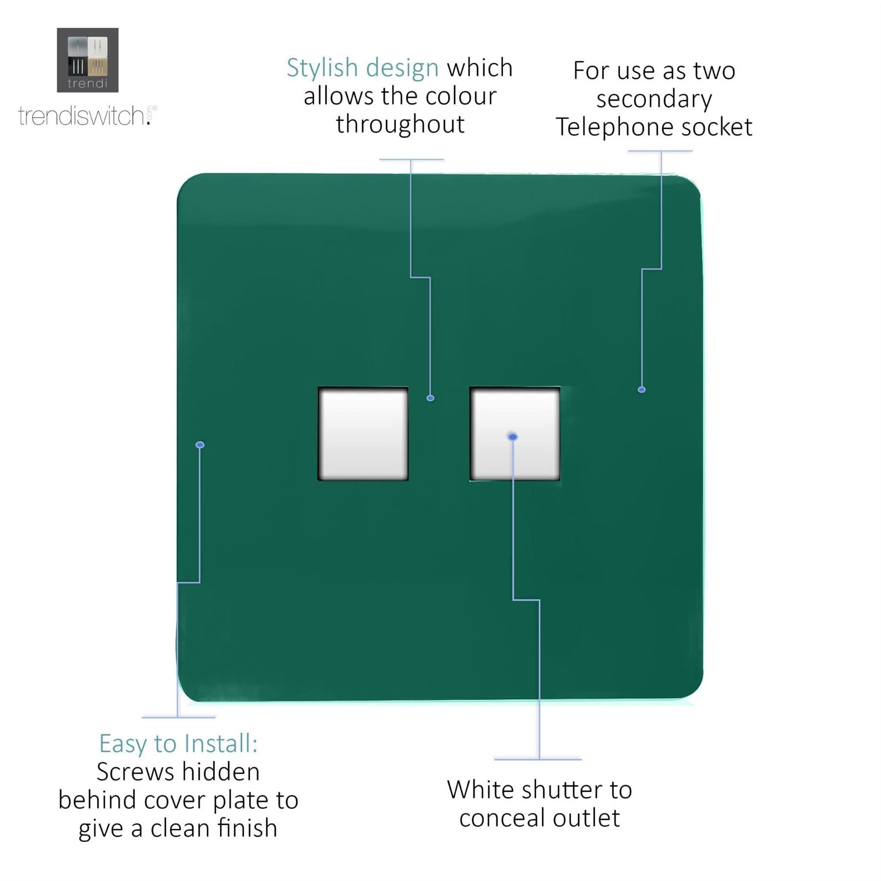 Trendi Artistic Modern Glossy Tactile 2 Gang Telephone Socket Dark Green