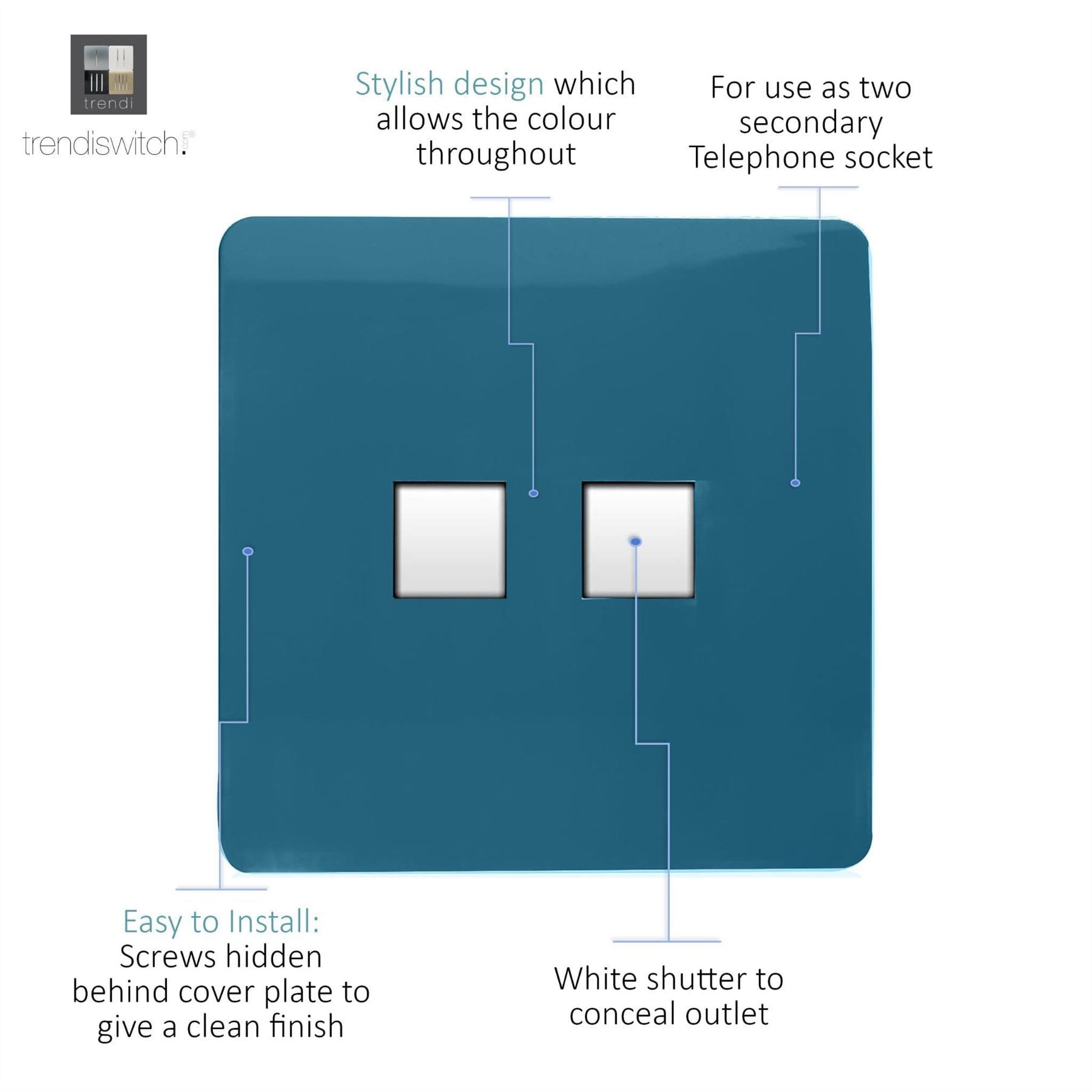 Trendi Artistic Modern Glossy Tactile 2 Gang Telephone Socket Ocean Blue