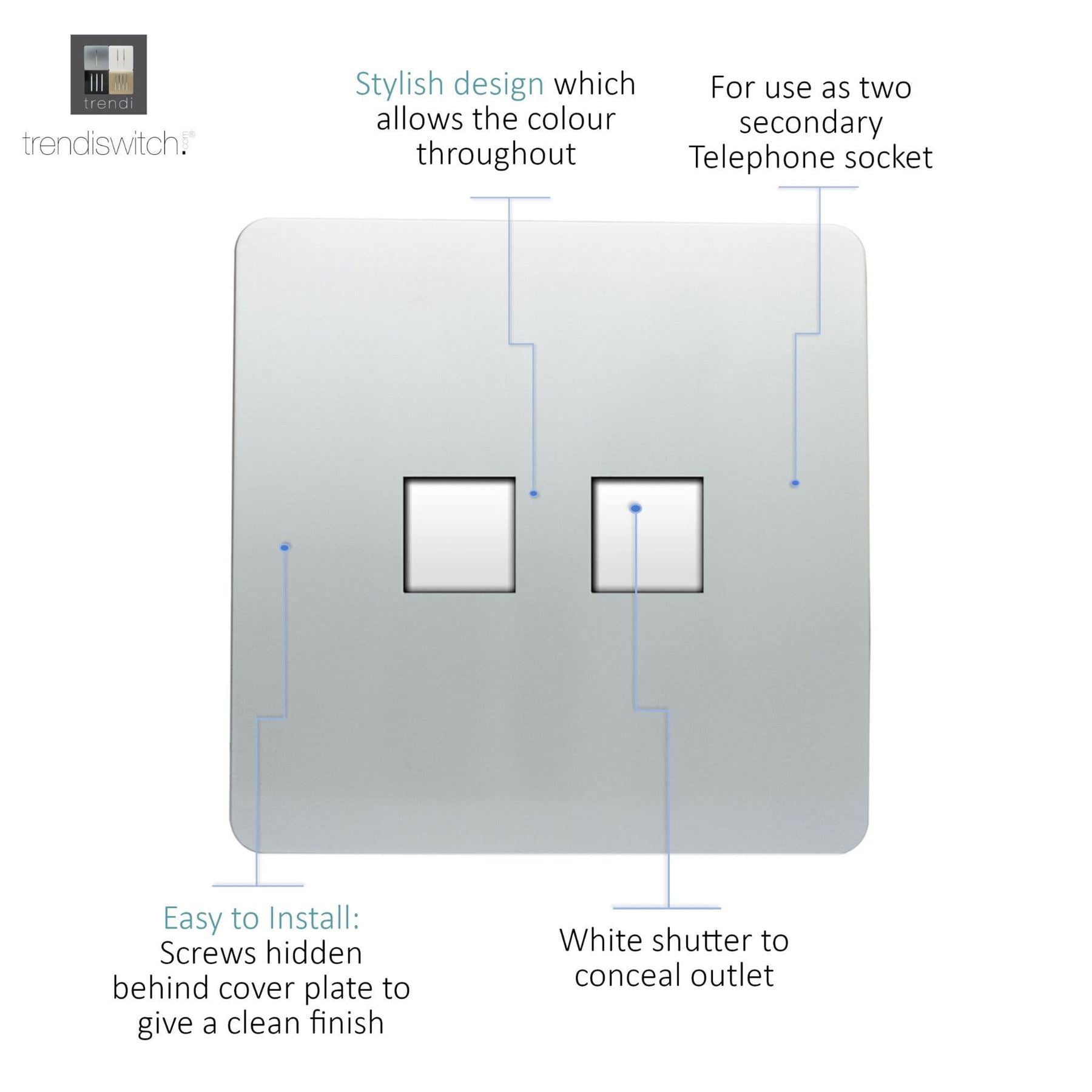 Trendi Artistic Modern Glossy Tactile 2 Gang Telephone Socket Silver ART-2TLPSI