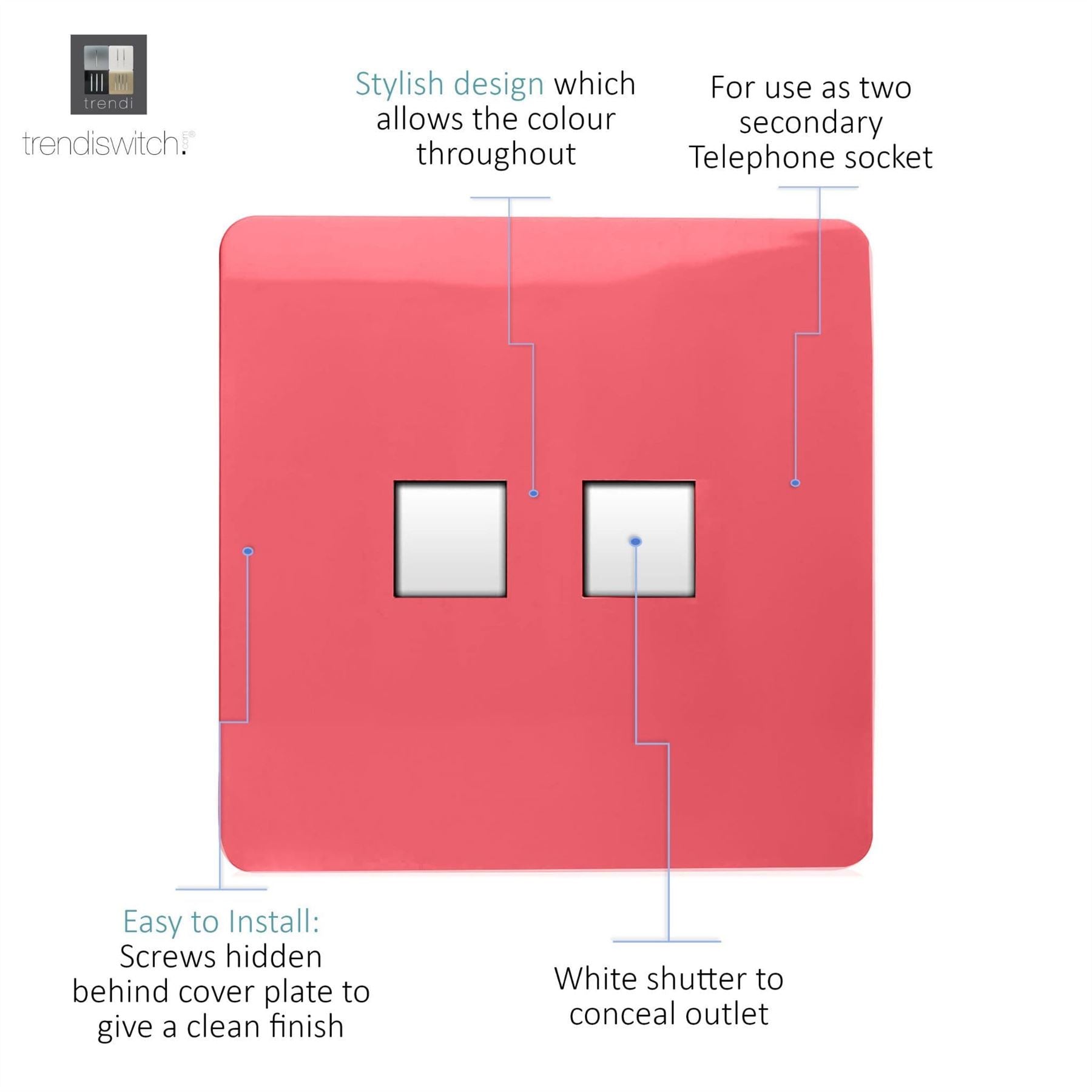 Trendi Artistic Modern Glossy Tactile 2 Gang Telephone Socket Strawberry