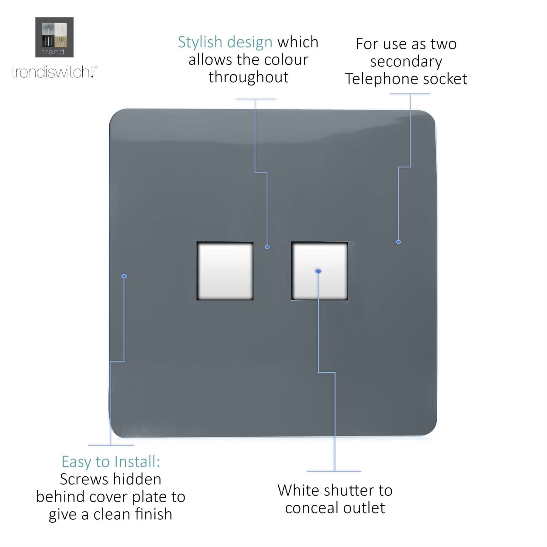 Trendi Artistic Modern Glossy Tactile 2 Gang Telephone Socket Warm Grey