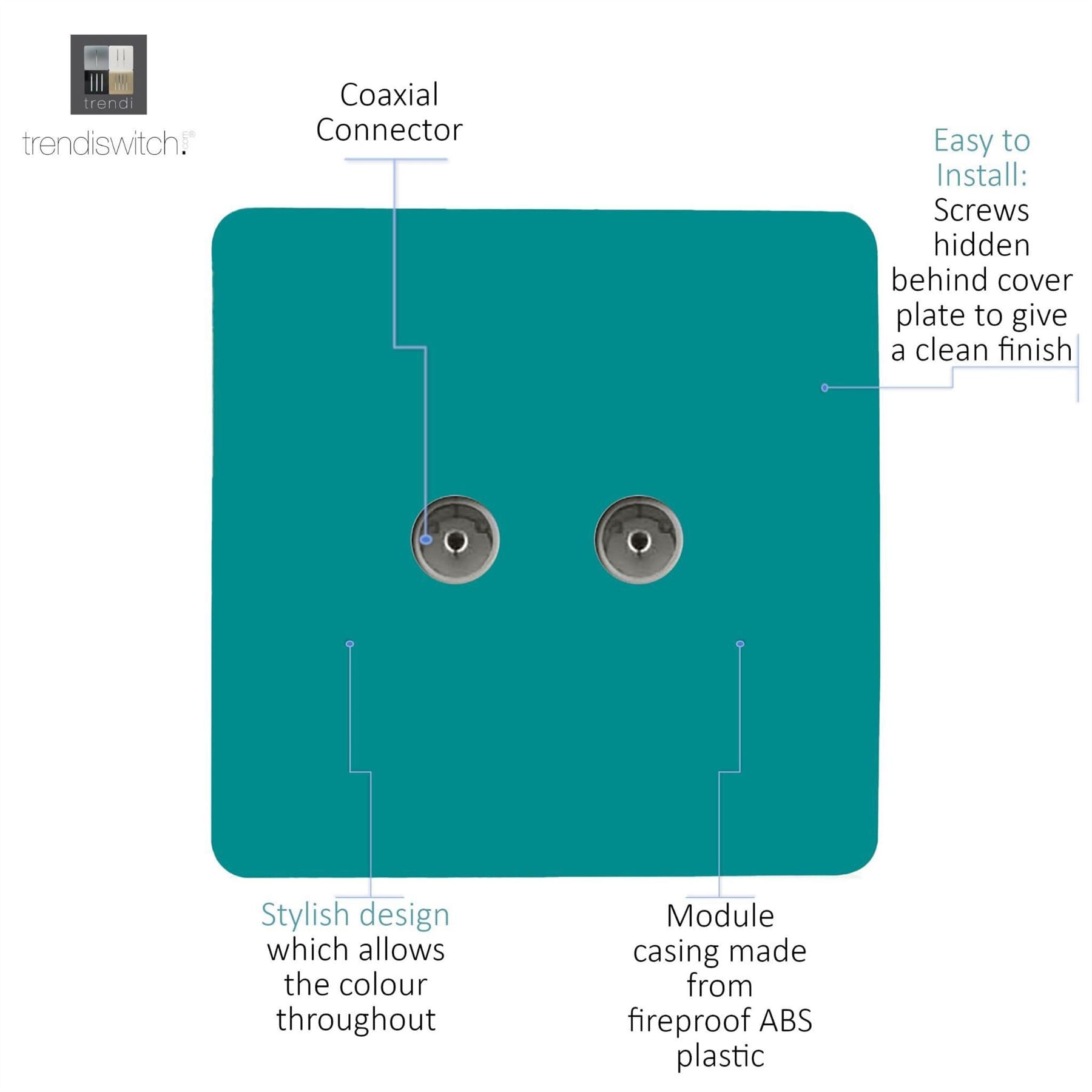Trendi Artistic Modern Glossy Tactile 2 Gang TV Socket Bright Teal