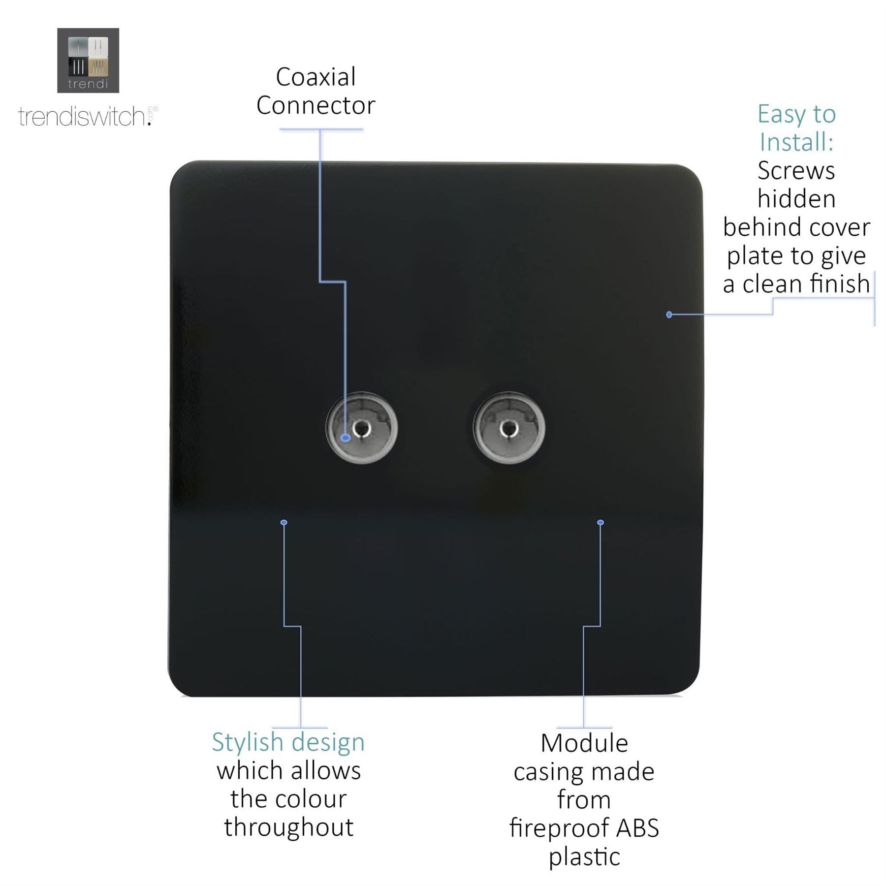 Trendi Artistic Modern Glossy Tactile 2 Gang TV Socket in Black ART-2TVSBK