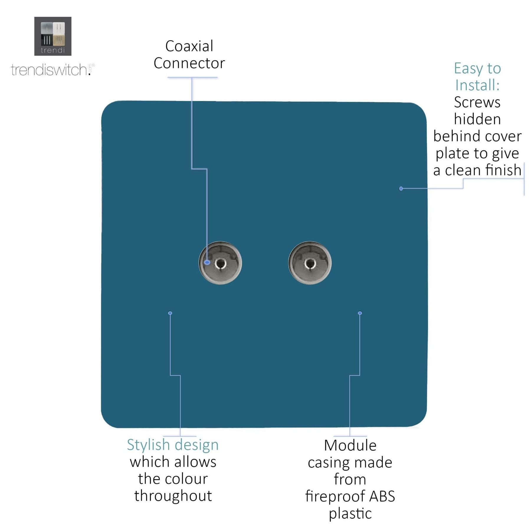 Trendi Artistic Modern Glossy Tactile 2 Gang TV Socket Ocean Blue