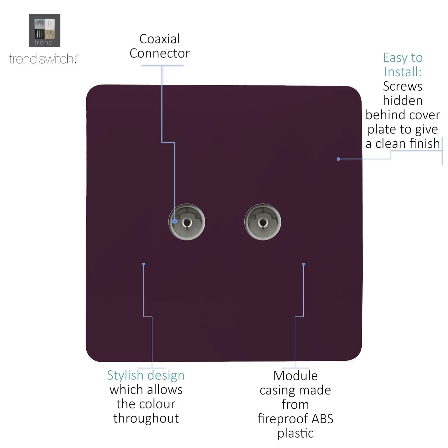 Trendi Artistic Modern Glossy Tactile 2 Gang TV Socket Plum