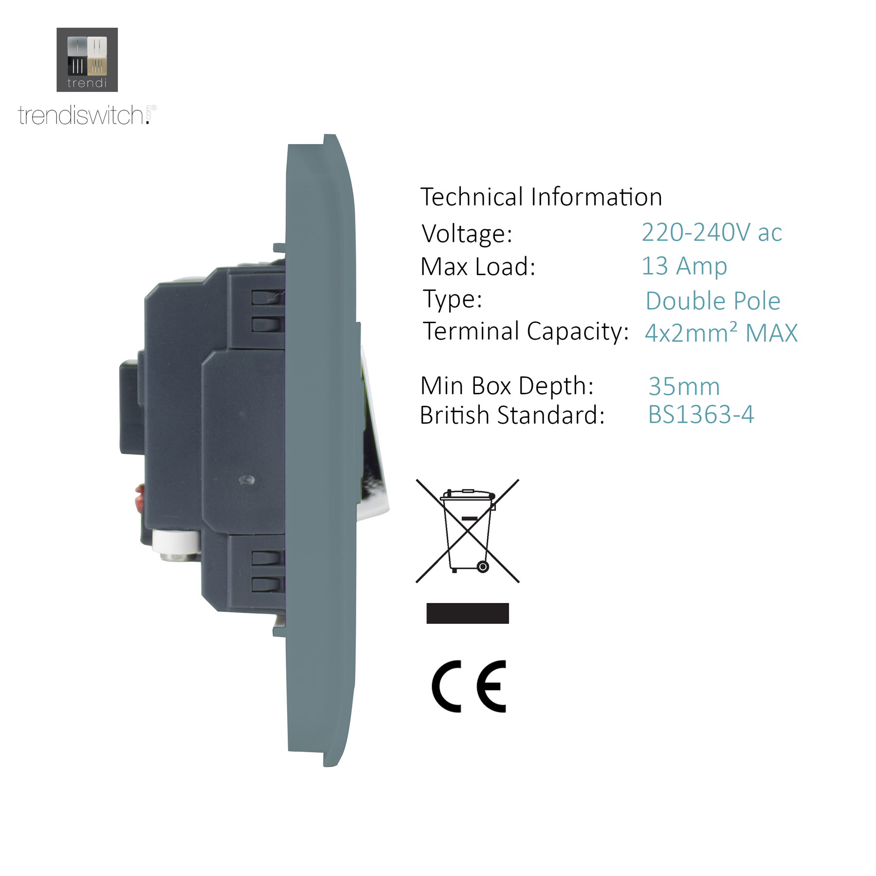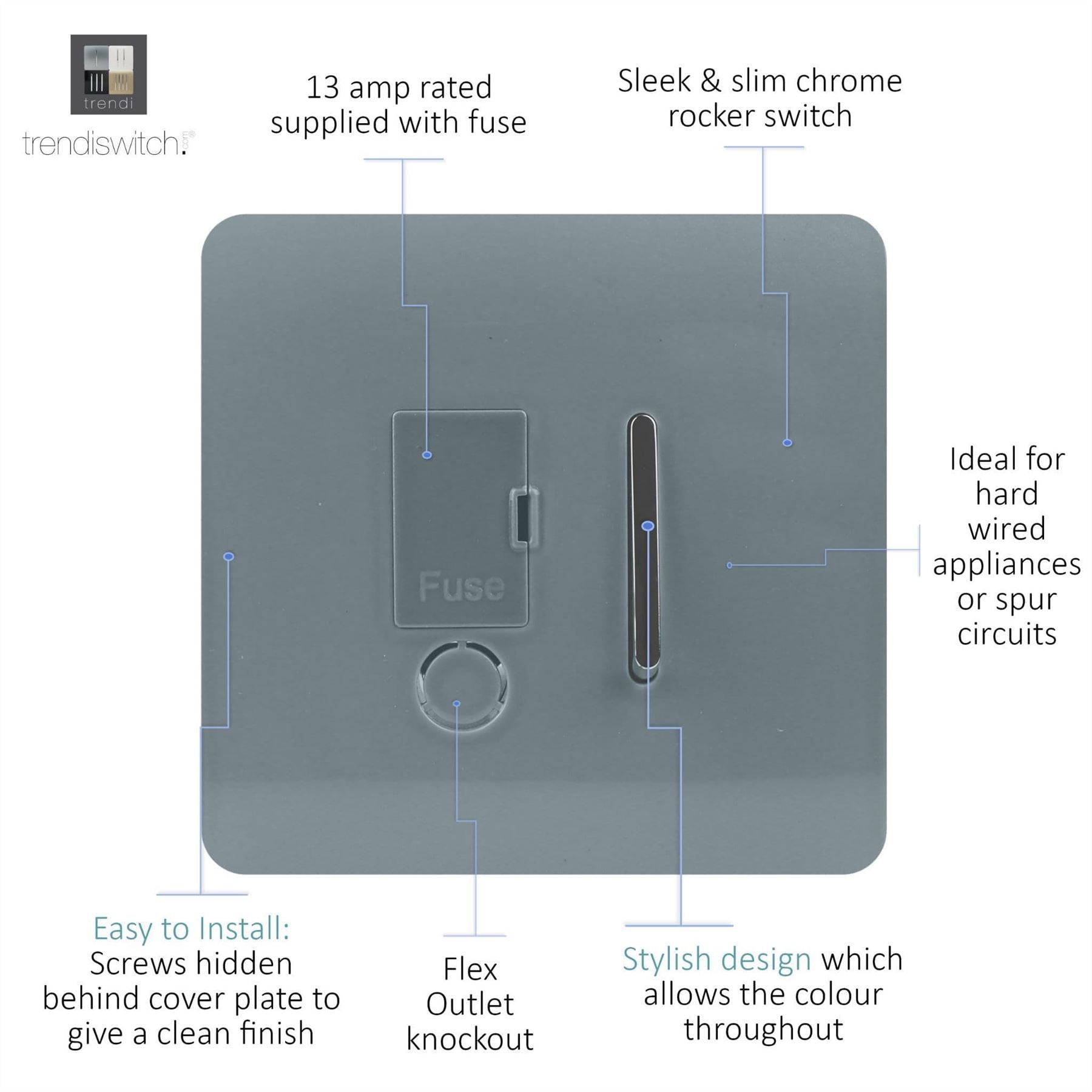 Trendi Artistic Modern Glossy Tactile Fused Spur Switch Cool Grey