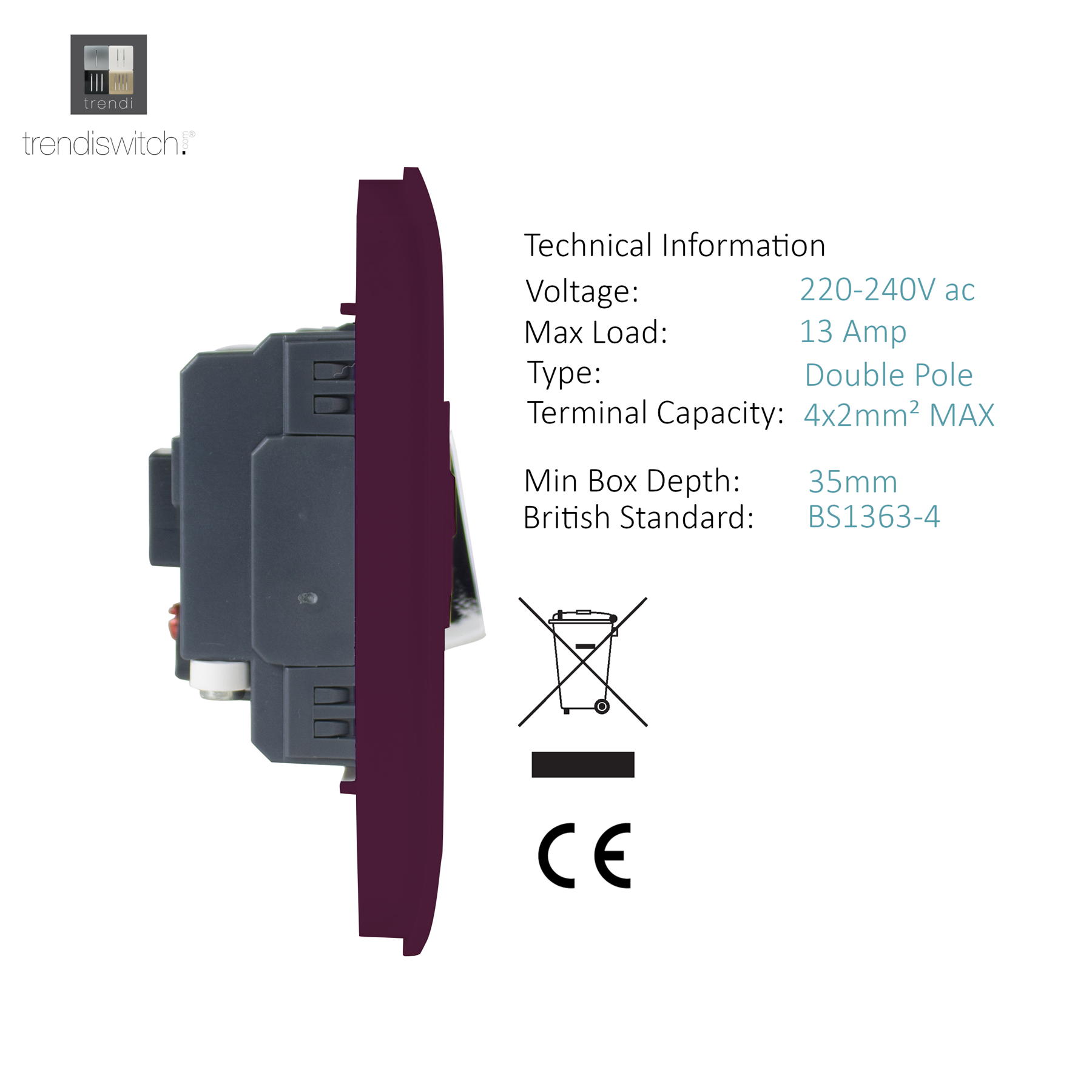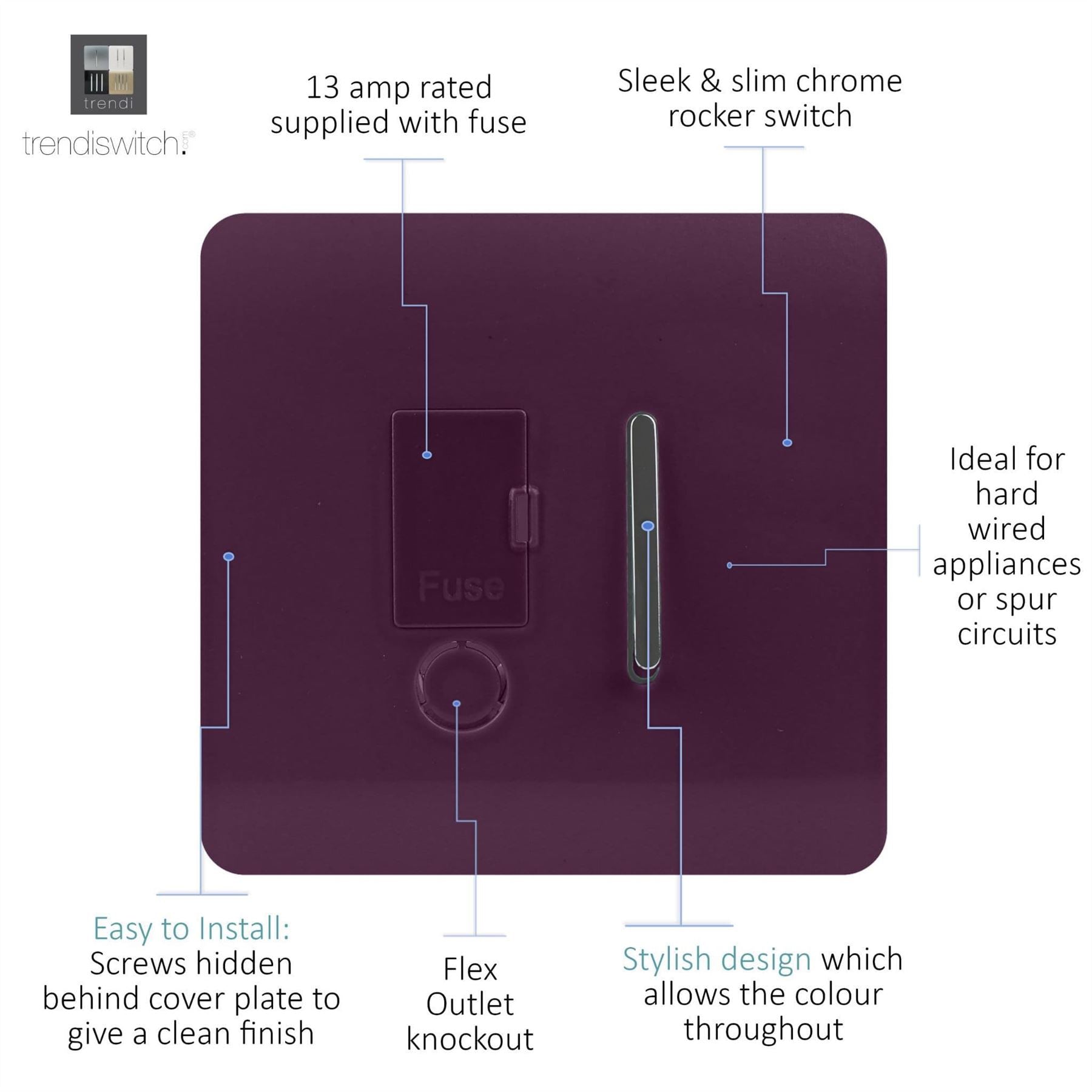 Trendi Artistic Modern Glossy Tactile Fused Spur Switch Plum