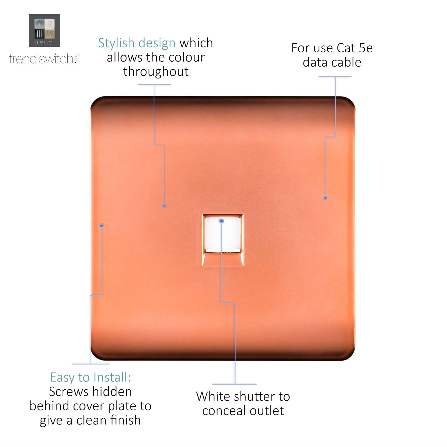 Trendi Artistic Modern Glossy Tactile RJ45 Cat 5e Ethernet Socket Copper