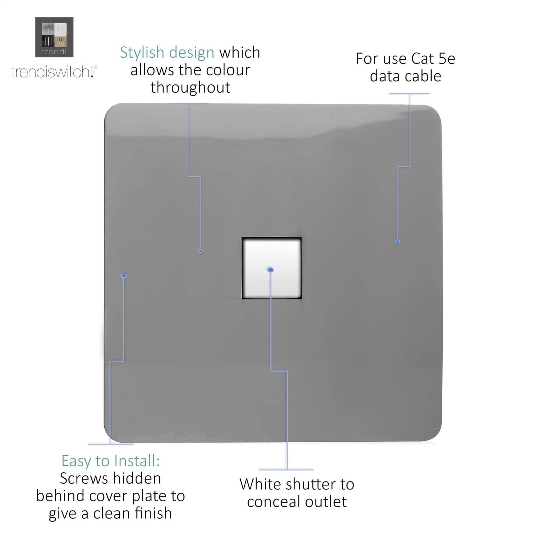 Trendi Artistic Modern Glossy Tactile RJ45 Cat 5e Ethernet Socket Light Grey