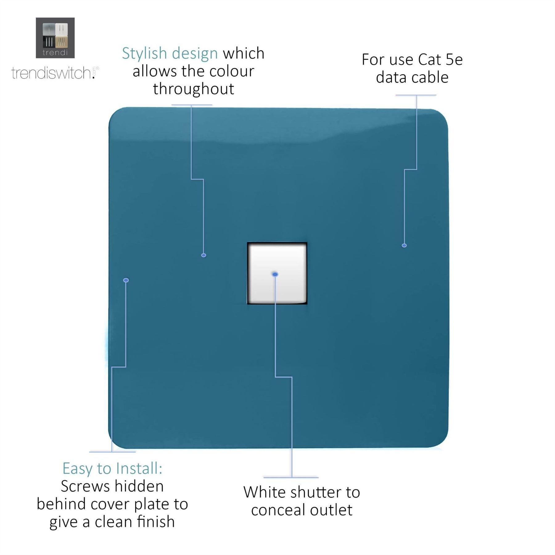 Trendi Artistic Modern Glossy Tactile RJ45 Cat 5e Ethernet Socket Ocean Blue