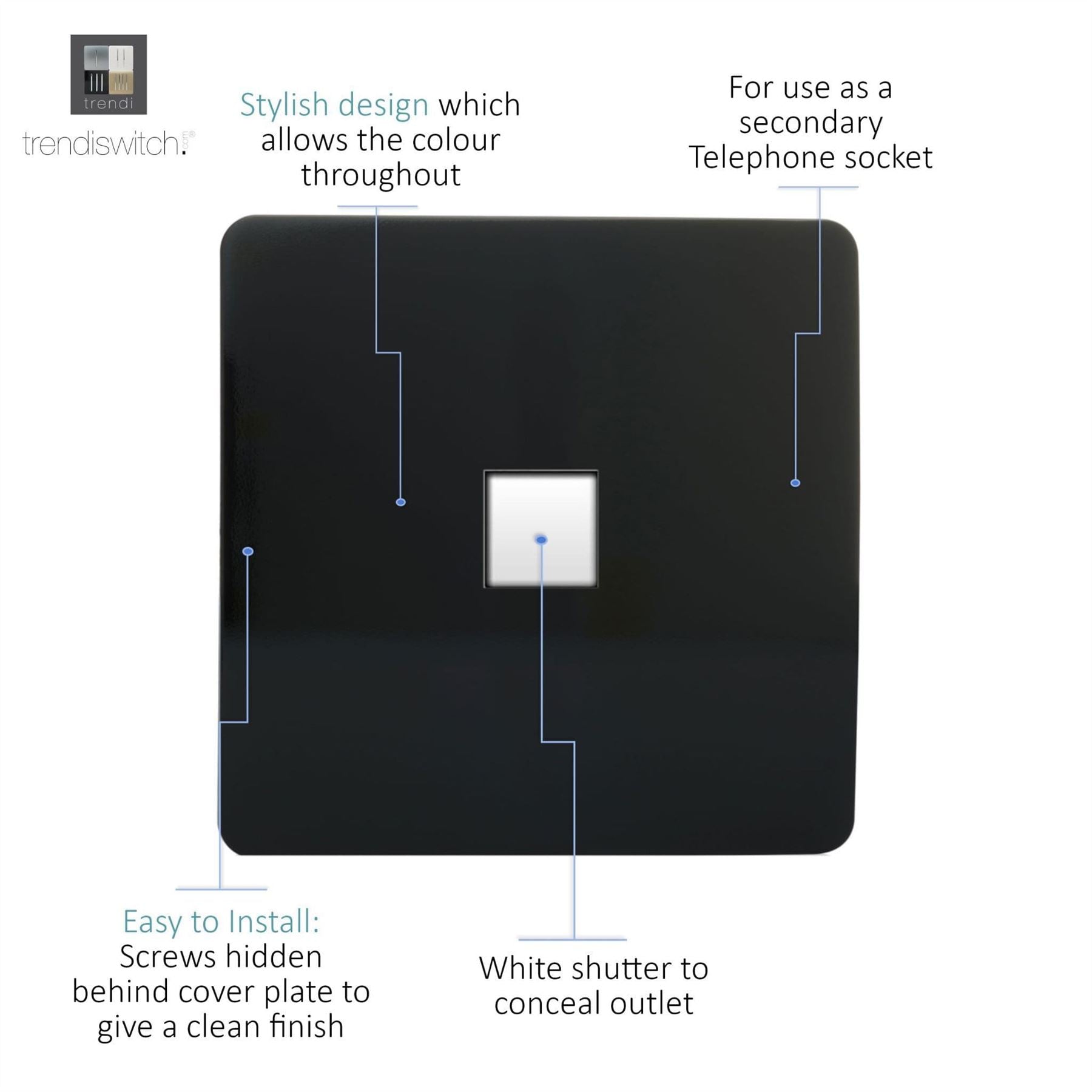 Trendi Artistic Modern Glossy Tactile Telephone Socket Black ART-TLPBK