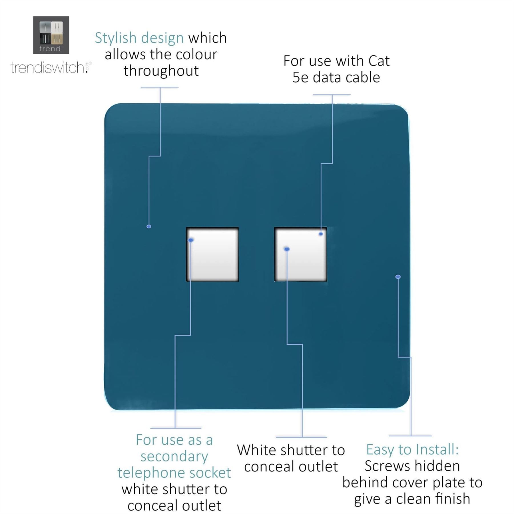 Trendi Artistic Modern Glossy Tactile Telephone Socket + Cat 5e&Cat 6 RJ45 PC Socket Midnight Blue