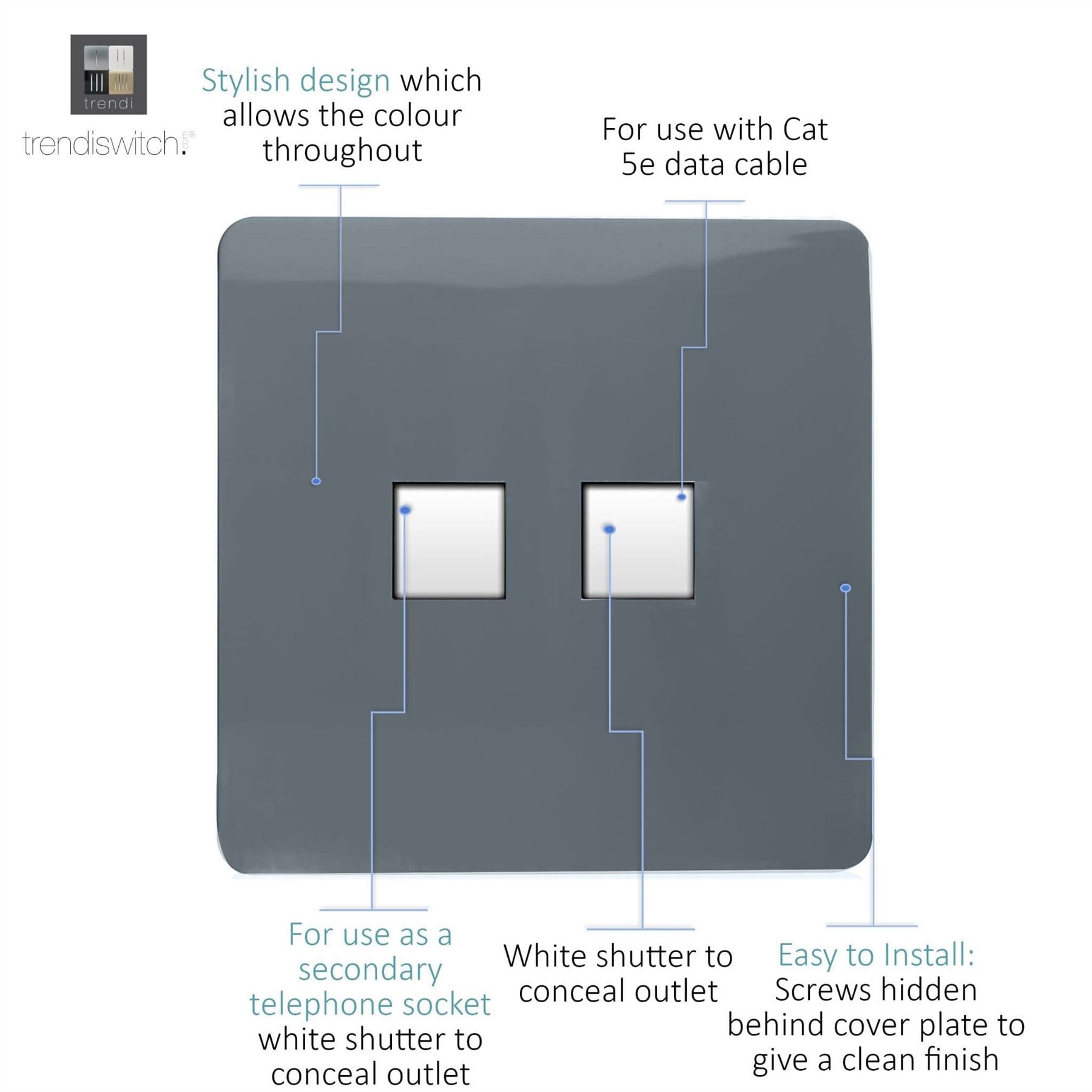 Trendi Artistic Modern Glossy Tactile Telephone Socket + Cat 5e&Cat 6 RJ45 PC Socket Warm Grey