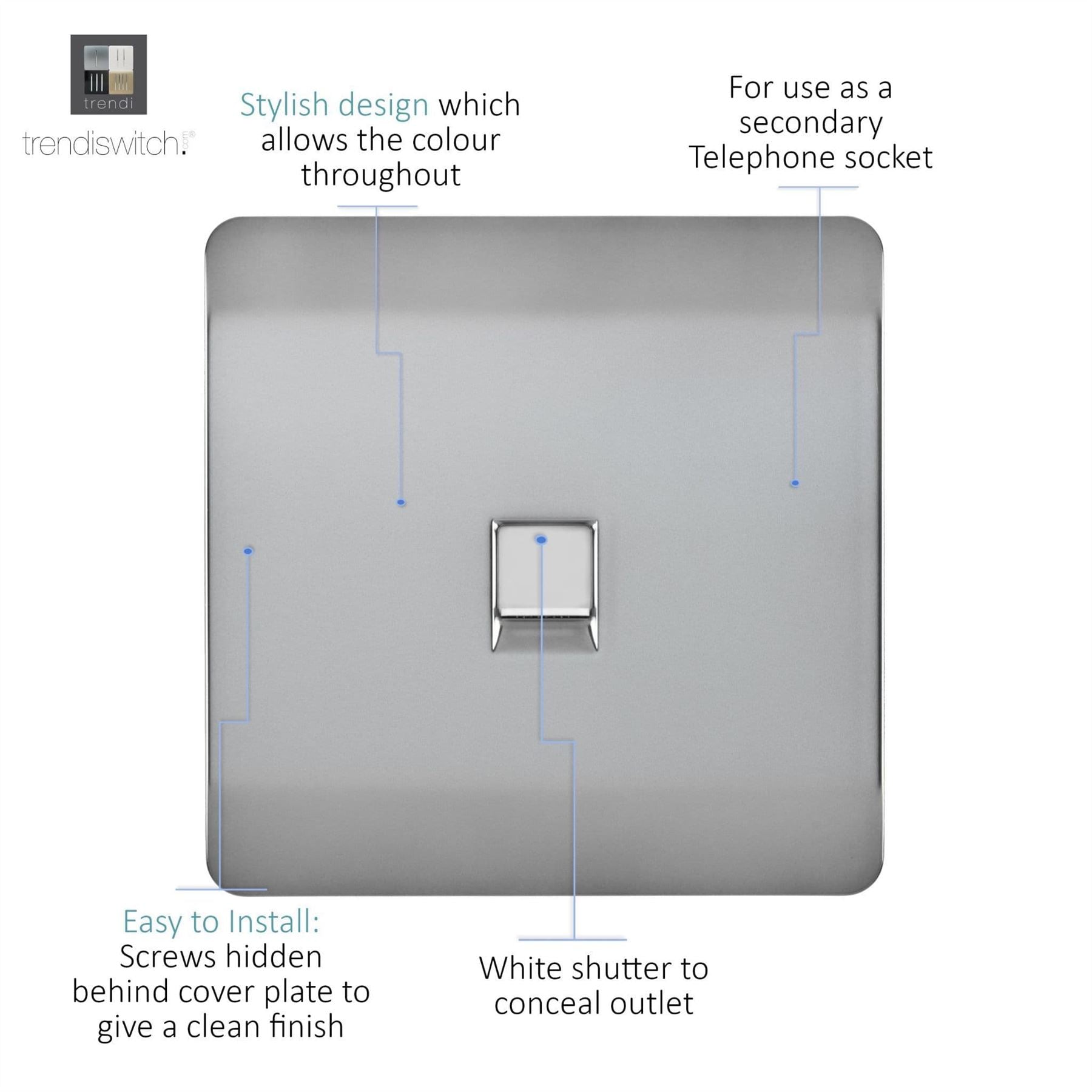 Trendi Artistic Modern Glossy Tactile Telephone Socket Stainless Steel