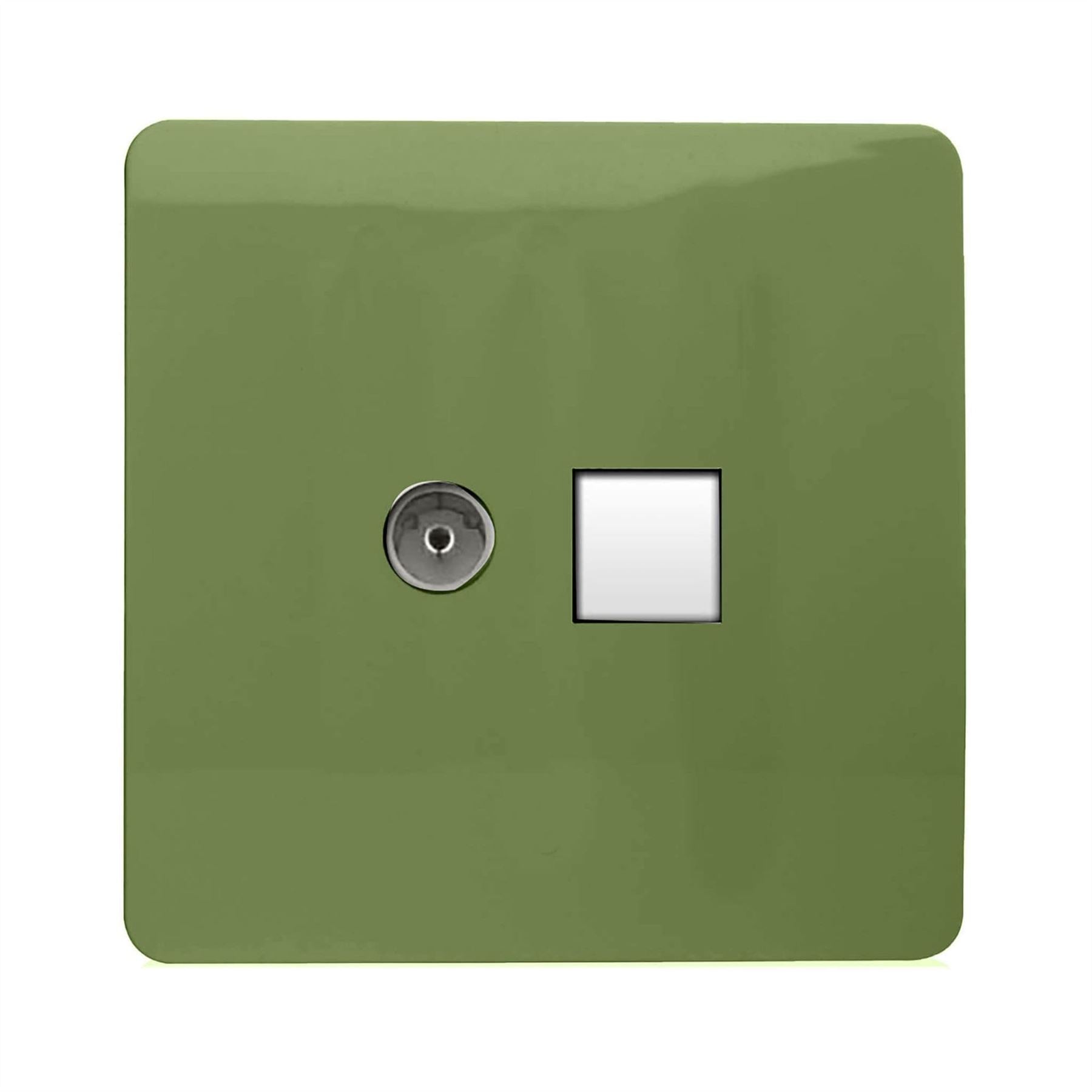 Trendi Artistic Modern Glossy Tactile TV Co-axial Socket + Telephone Socket Moss Green